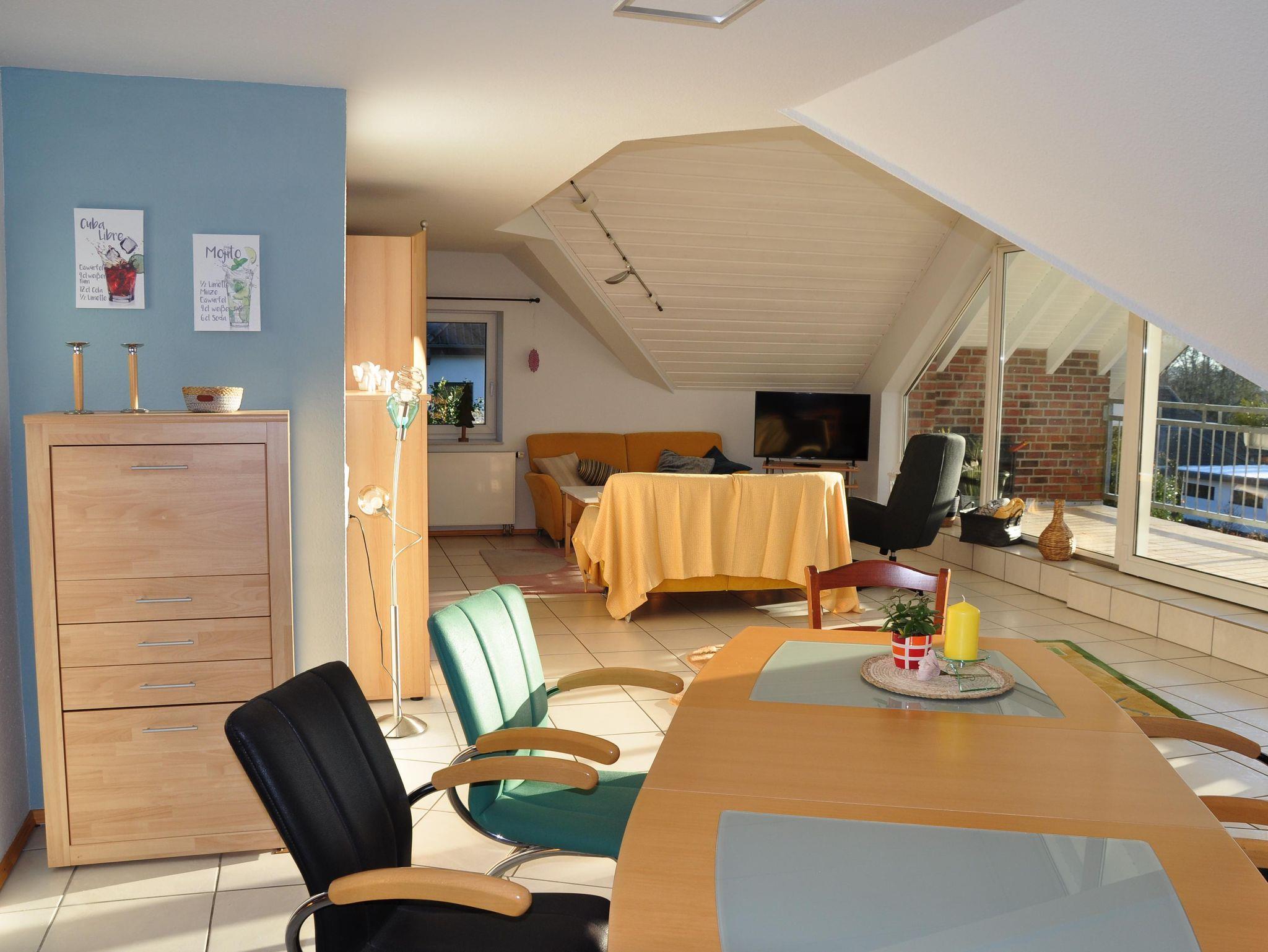 Das gemütliche Wohn-/Esszimmer mit Ausgang auf den Balkon verfügt über IP-TV und über eine Stereo-Anlage mit Bluetooth.