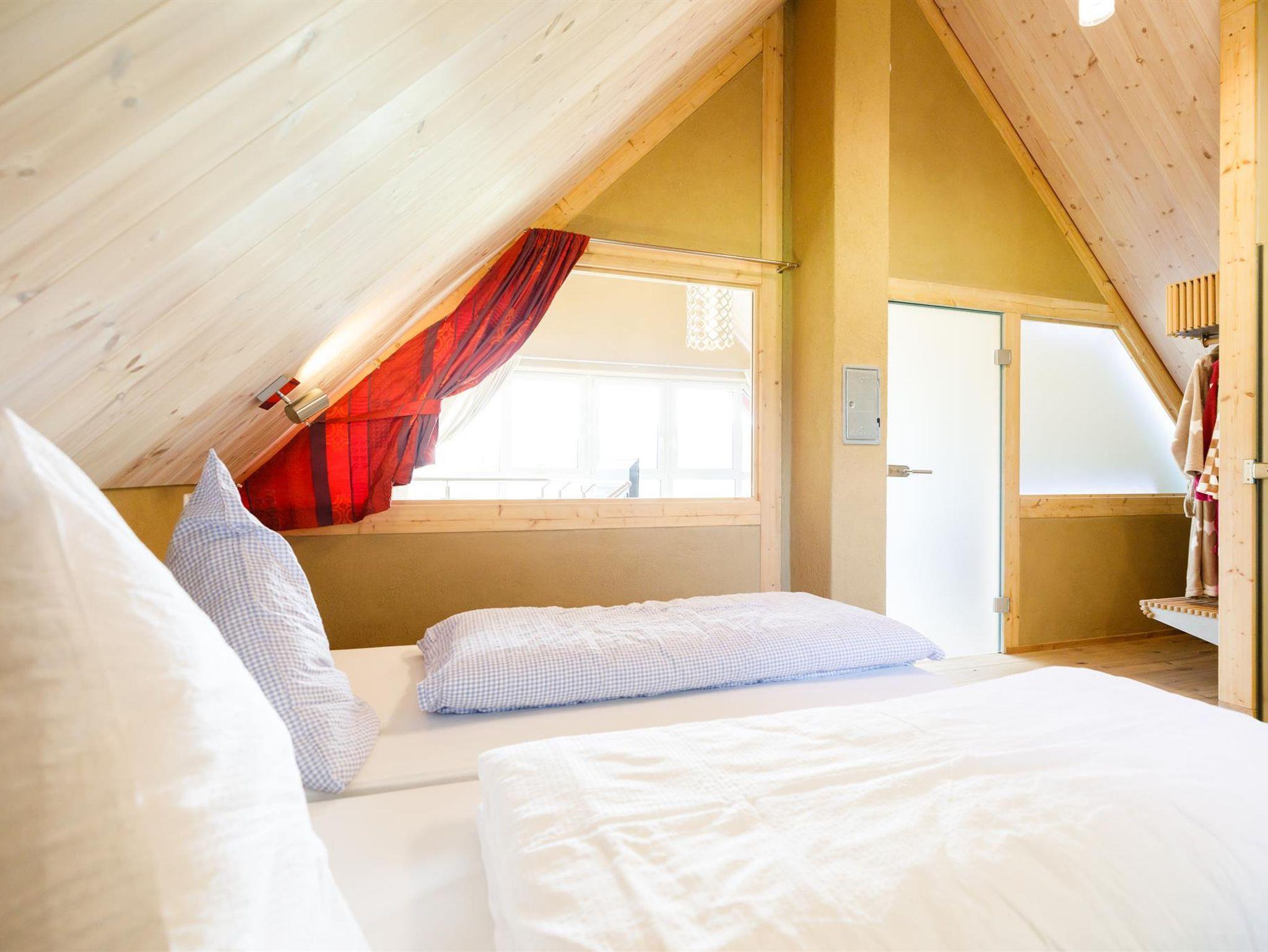 2 Schlafzimmer (1x EG und 1x OG), 2 Bäder (1x barrierefrei im EG und ein weiteres, kleines im OG), offene, voll ausgestattete Küche mit Esszimmer, Ofen und Panoramablick.