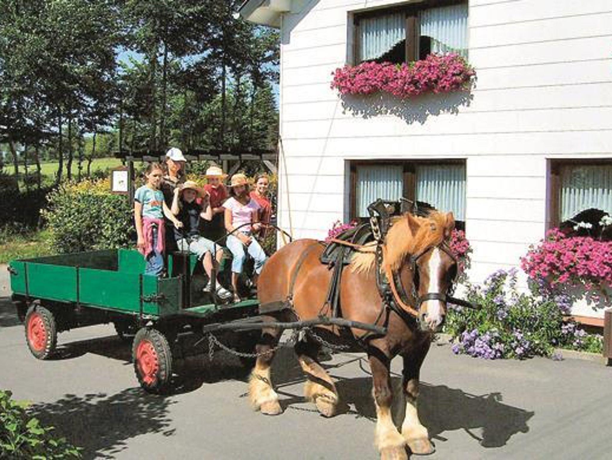 Die Spielwiese und -scheune, der Pool, Grillgelegenheiten, Wandern, Mountainbiken, Kutsch- und Planwagenfahrten, Reiten, Skilanglauf im Winter lassen keine Langeweile aufkommen.
