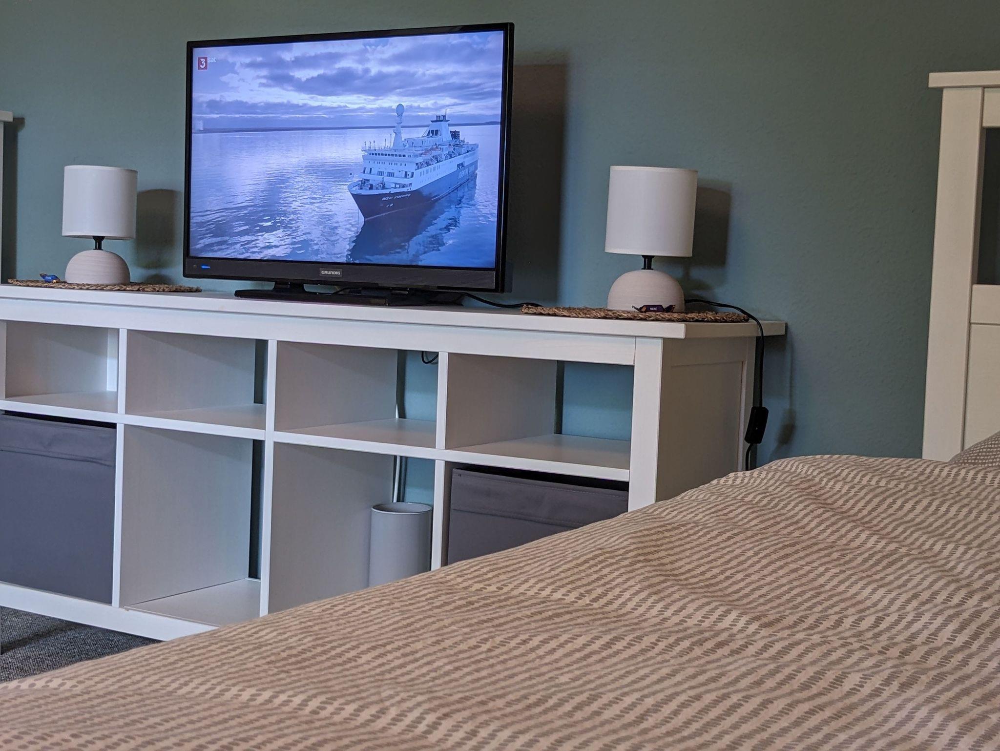 Die Küche hat alles was man zur Selbstverpflegung braucht, auch Basics wie Gewürze, Öl, Kaffee und Tee gibt es hier. Im Wohn-und Schlafraum ist reichlich Platz. Gemütlichkeit findet man in der Sofaecke mit Fernsehsessel und guten Schlaf in zwei komfortablen Einzelbetten. Das moderne Badezimmer mit Dusche und WC bietet ebenfalls eine Grundausstattung für Ihre Übernachtung.