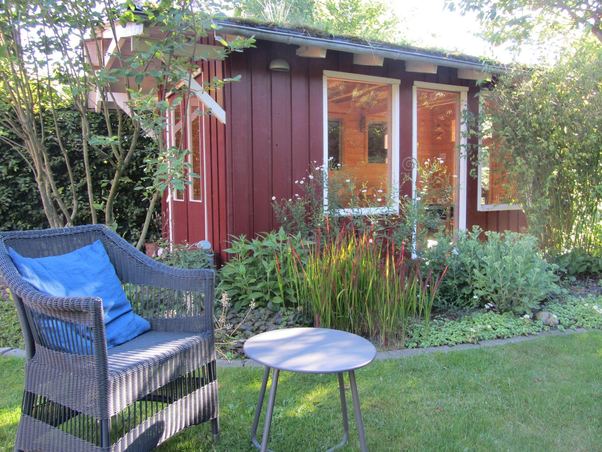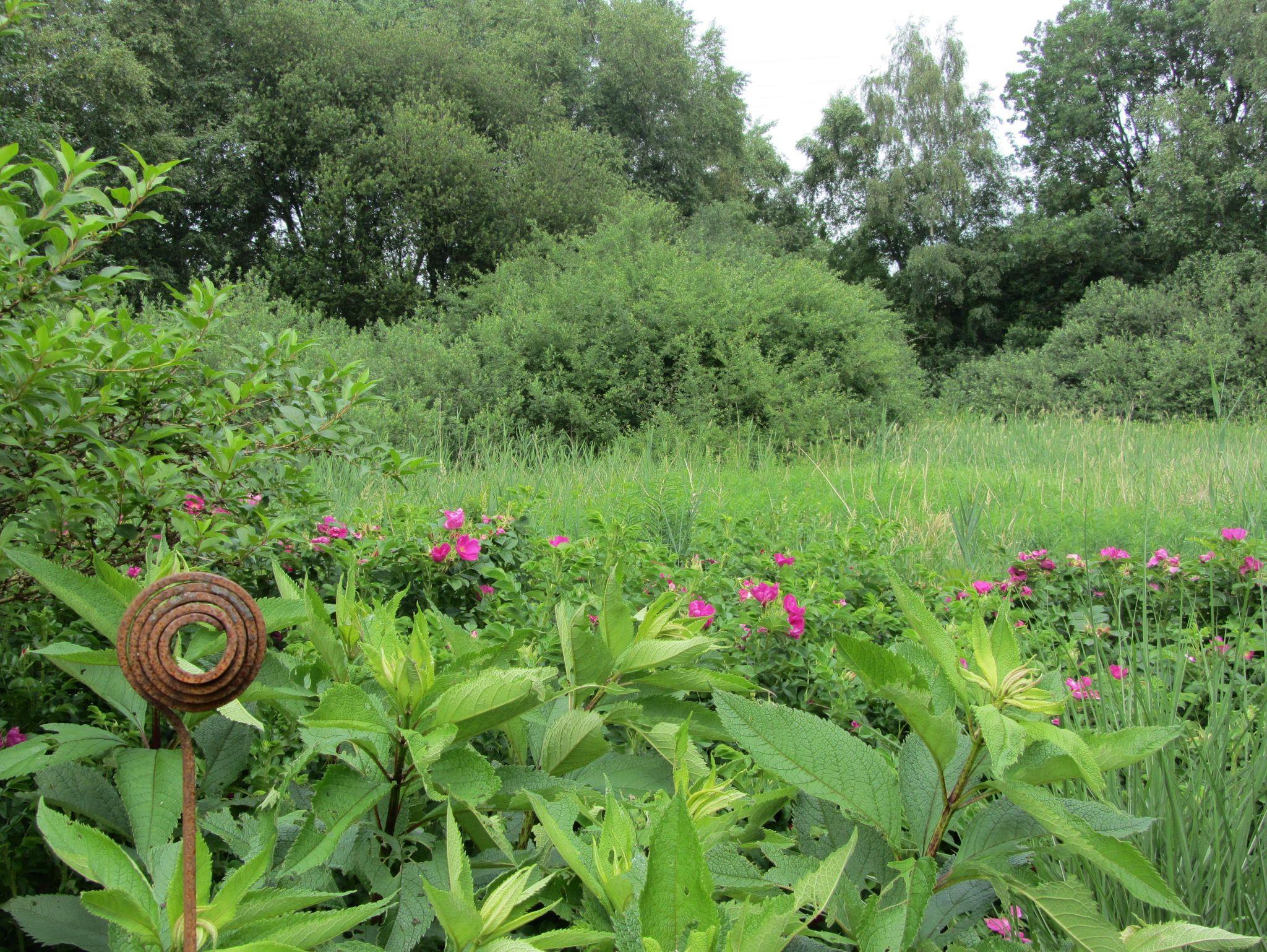 Südterrasse und Parkplatz sind direkt vor der Tür, der Garten mit Blick auf wilde Natur steht den Gästen zur Verfügung.