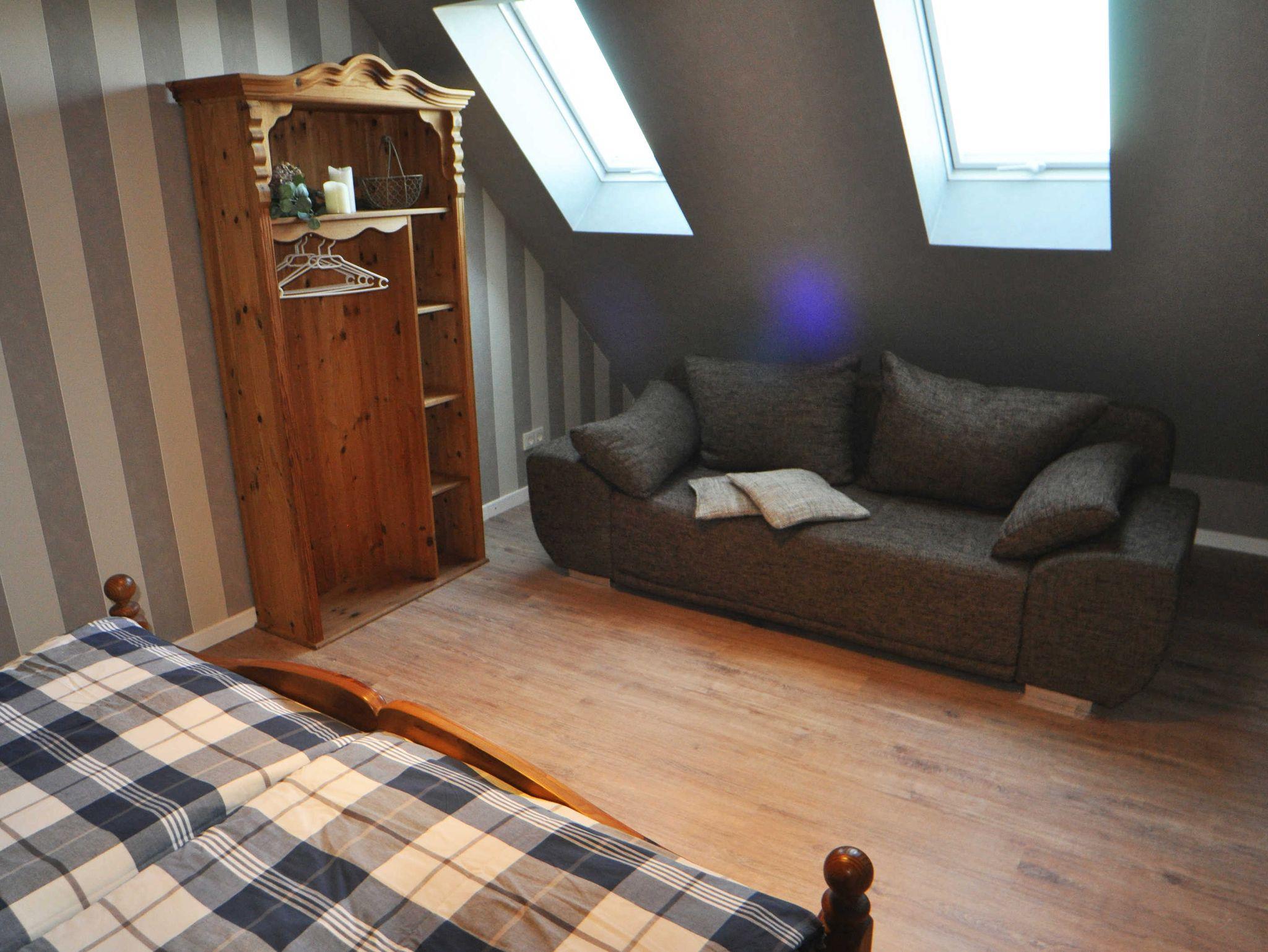 Die liebevoll eingerichtete Ferienwohnung Annette verfügt über zwei Doppelzimmer im Obergeschoss. Zustellbetten und Babybetten möglich. Weiterhin bietet sie einen Hauswirtschaftsraum, eine separate Küche, ein großes Wohnzimmer mit Leseecke, ein Badezimmer mit WC und ebenerdiger Dusche im Erdgeschoss. Zusätzliches WC im Obergeschoss.