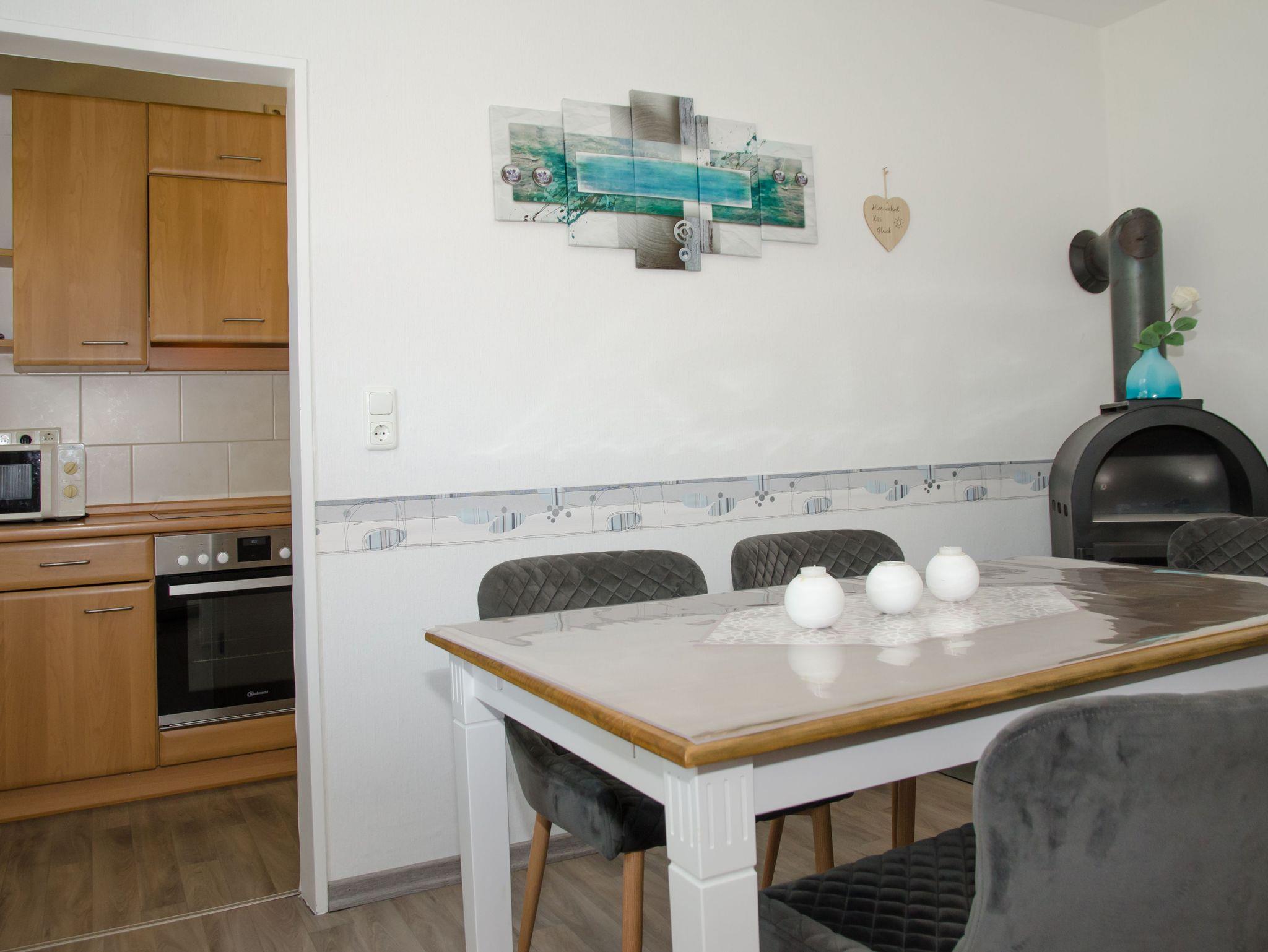 Das gemütlich eingerichtete Ferienhaus in ruhiger, ländlicher Lage, verfügt über 2 DZ, 1 EZ (Betten bezogen), großes Wohnzimmer, Esszimmer, Küchenzeile mit Geschirrspüler und Mikrowelle, ein Bad mit begehbarer Dusche, sep. WC (Handtücher inkl.). Außerdem steht den Gästen eine Garage, Garten mit Terrasse, Liegewiese, Gartenmöbeln und Grill zur Verfügung. Waschmaschine, Gefrierschrank, SAT-TV mit DVD-Player vorhanden. Zusätzliche Decken und Kopfkissen, Brötchenservice und Einkaufsservice vor der Anreise auf Wunsch! Nähe Erholungsgebiet Timmler Meer.