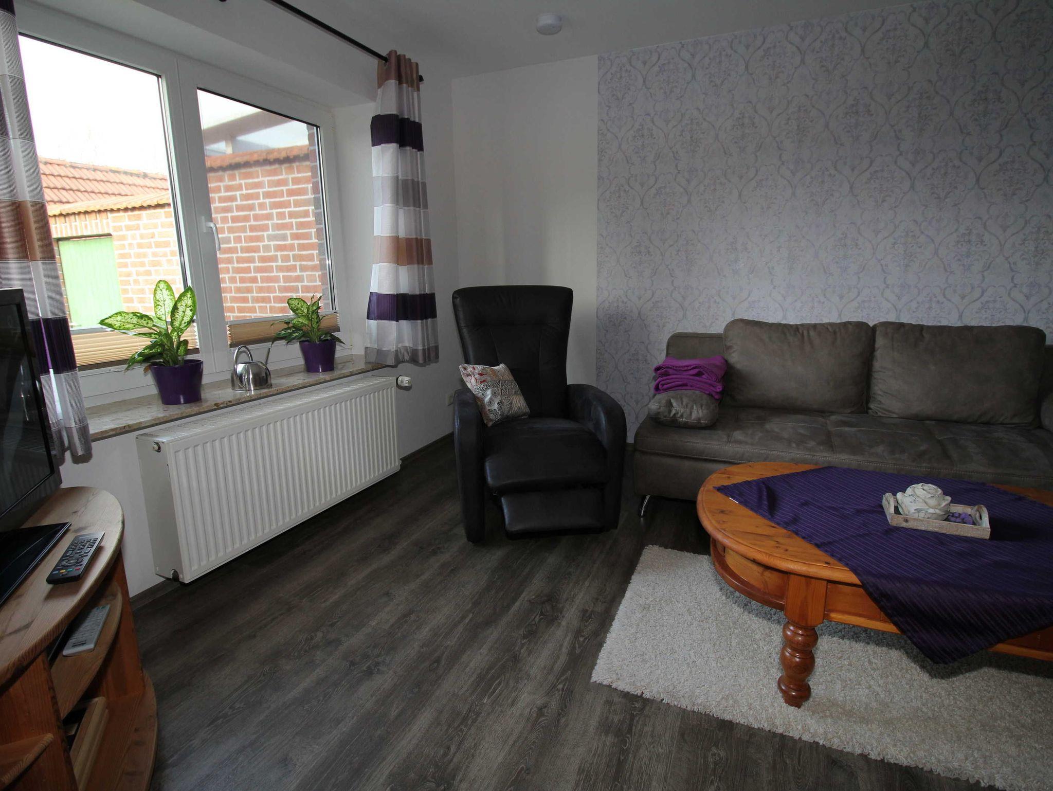 Restaurierter Gulfhof in Neermoor. Ausstattung: Einbauküche mit Herd, Backofen, Microwelle, Spülmaschine und Kühlschrank. Reichhaltiges Geschirr, Kaffeemaschine, Eier - u. Wasserkocher sowie Toaster vorh. 1 Schlafz. mit Doppelbett. Im Wohnzimmer zus. Schlafcouch. Die Fewo ist für Allergiker geeignet, Fußbodenbelege aus Laminat bzw. Fliesen. Betten und Matratzen sind aus antiallergischen Materialen. Zusätzliche Kopfkissen und Decken sind vorhanden. Nichtraucherwohnung, Haustiere nicht gestattet. Im Wohnz. SAT-TV, in der Küche CD/Radio, Bad mit DU/WC, Fön. Fußbodenerwärmung im Bad. Waschmaschine, Trockner, Bügelbrett u. Bügeleisen stehen zur Verfügung. Bettwäsche, Handtücher incl. Gartenmöbel, Fahrräder, Kanu, Nordic-Walking-Stöcke und Grill stehen kostenlos zur Verfügung. Saunabenutzung auf Anfrage. Ein beheizter Schwimm-Naturteich zur Mitbenutzung.