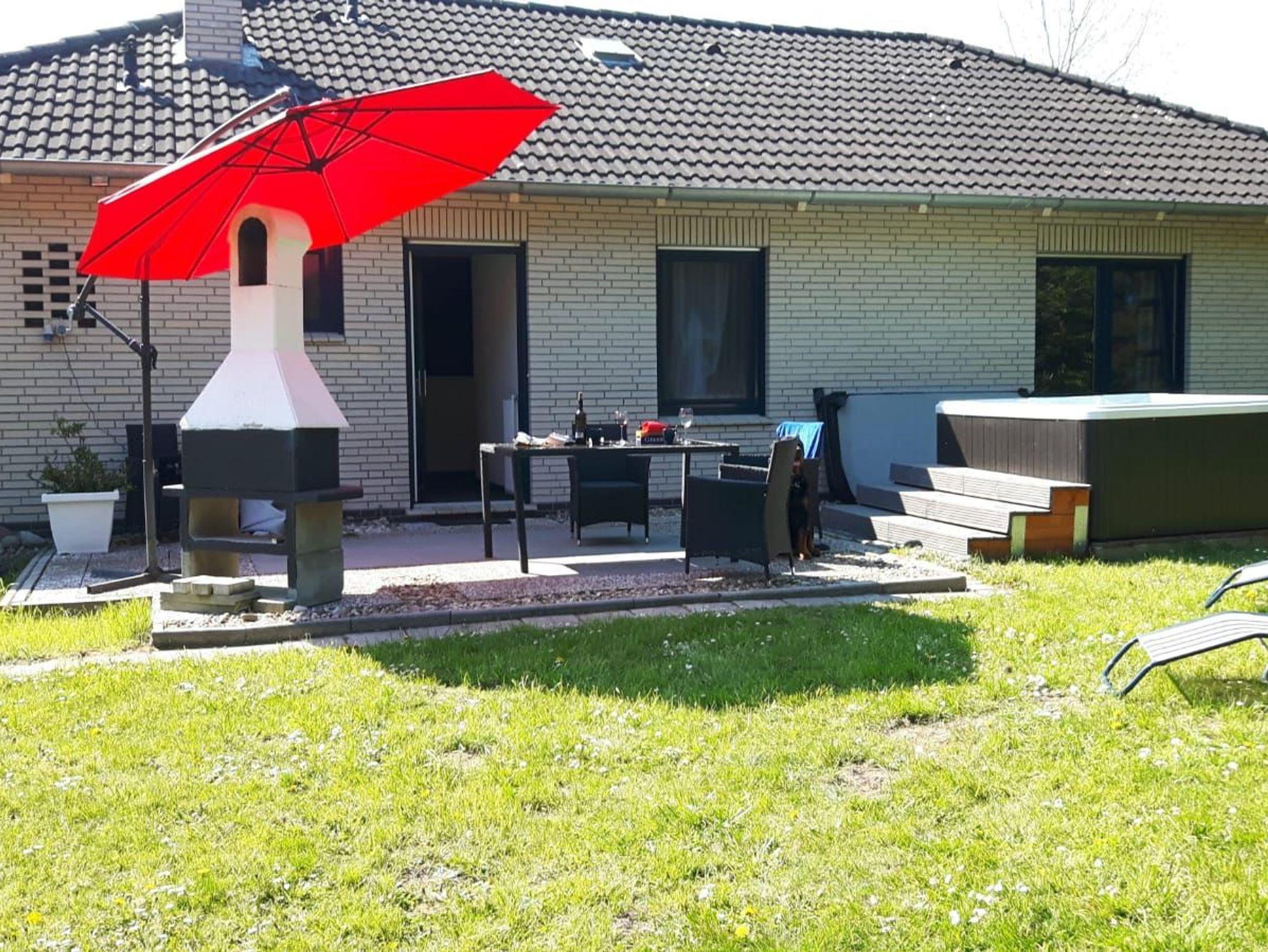 Freistehendes 130 qm großes Ferienhaus (Bungalow) zur Alleinnutzung mit ebenerdigen Räumen und großem uneinsehbaren umzäunten Garten mit Terrasse. Hunde sind hier herzlich willkommen. Ein Bromet Hundezwinger und Hundebett stehen zur Verfügung. Von Mai bis September kann der Whirlpool im Garten zusätzlich gebucht werden. Dazu können Sie eine von uns bereitgestellte gekühlte Flasche Prosecco genießen. Der Whirlpool wird nach jeder Buchung gereinigt und das Wasser ausgetauscht. Für Monteure ist das Ferienhaus nicht geeignet.