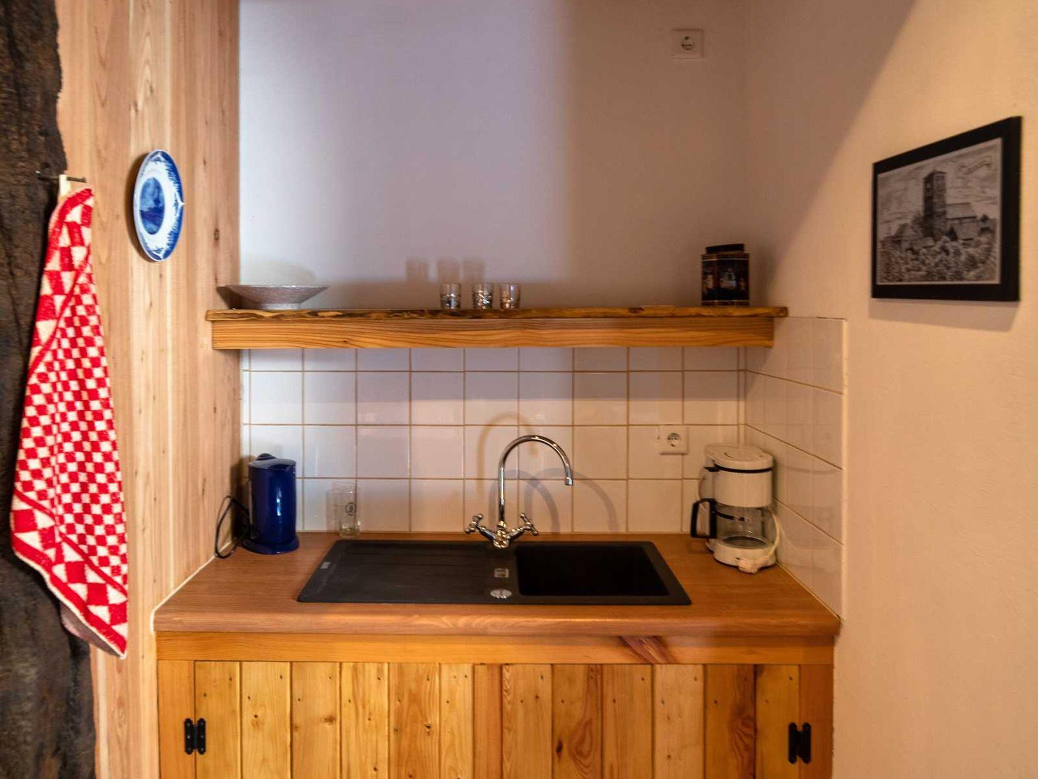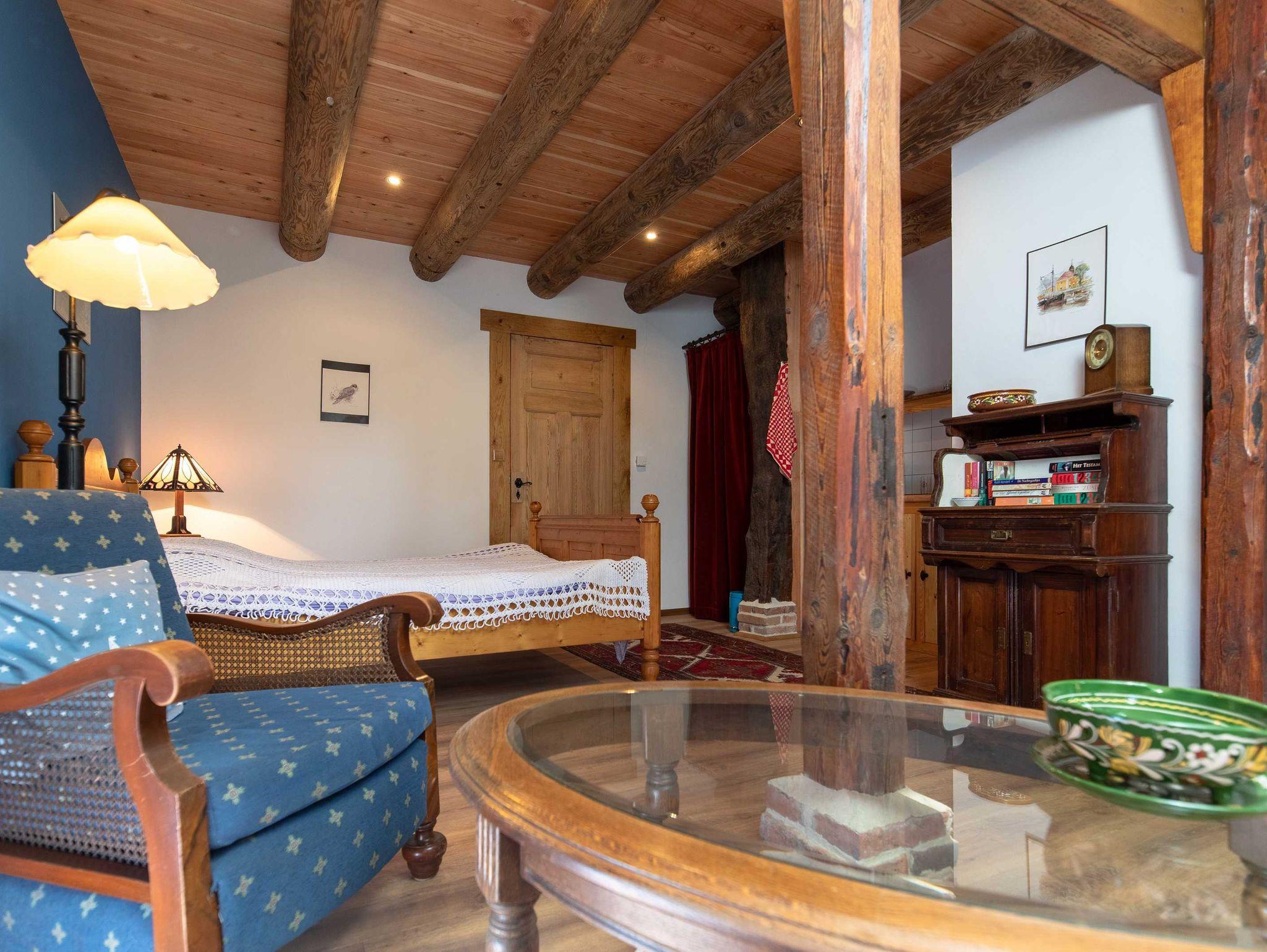 Mit viel Liebe zum Detail eingerichtetes Gästezimmer im Erdgeschoss mit einem Doppelbett. Das Badezimmer ist mit Dusche und WC. In dem Gästezimmer ist eine kleine Pantryküche mit Kaffeemaschine, Wasserkocher und einer Mikrowelle. Außerdem bietet das Gästezimmer eine kleine Sitzecke und Möglichkeiten zum lesen an.