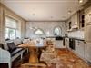 Der offene Wohnraum erstreckt sich von einer Gaggenau-Landhausküche mit Miele-Geräten, Weinklimaschrank, Nespresso-Kaffeemaschine mit Tabs-unlimited, Ronnefeld-Teebox. Mineralwasser stellen wir für Sie unlimited zur Verfügung. Essecke mit einer Holztafel, Sitzbank, gemütlichen Kissen und Eames Chair Stühlen und Poet-Sound Anlage.