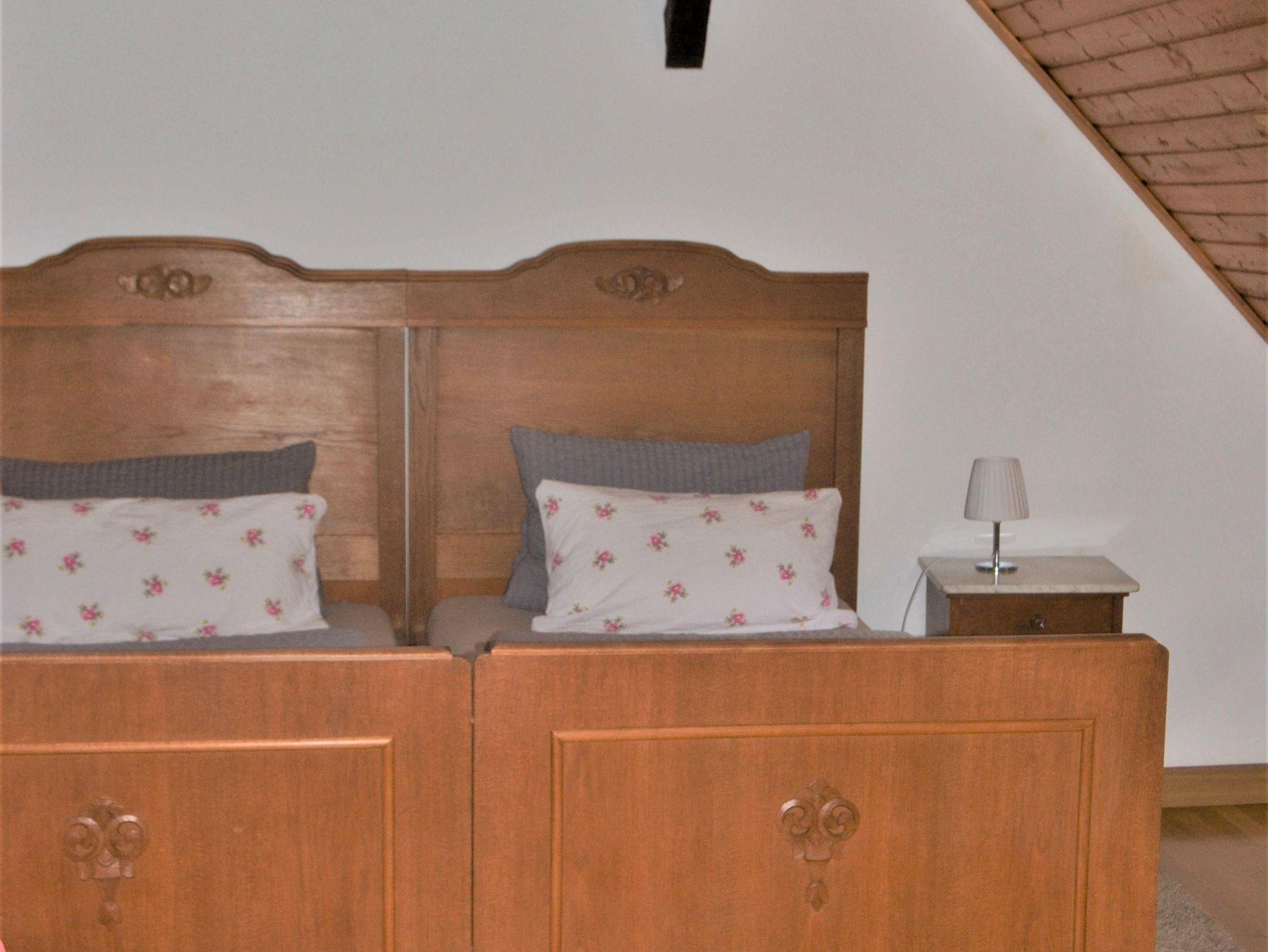 Das Zimmer im Erdgeschoss für max. 2 Personen kann auch zusätzlich zur Ferienwohnung im gleichen Hause gebucht werden. Das Zimmer im Dachgeschoss ist über zwei steile Treppen zu erreichen.