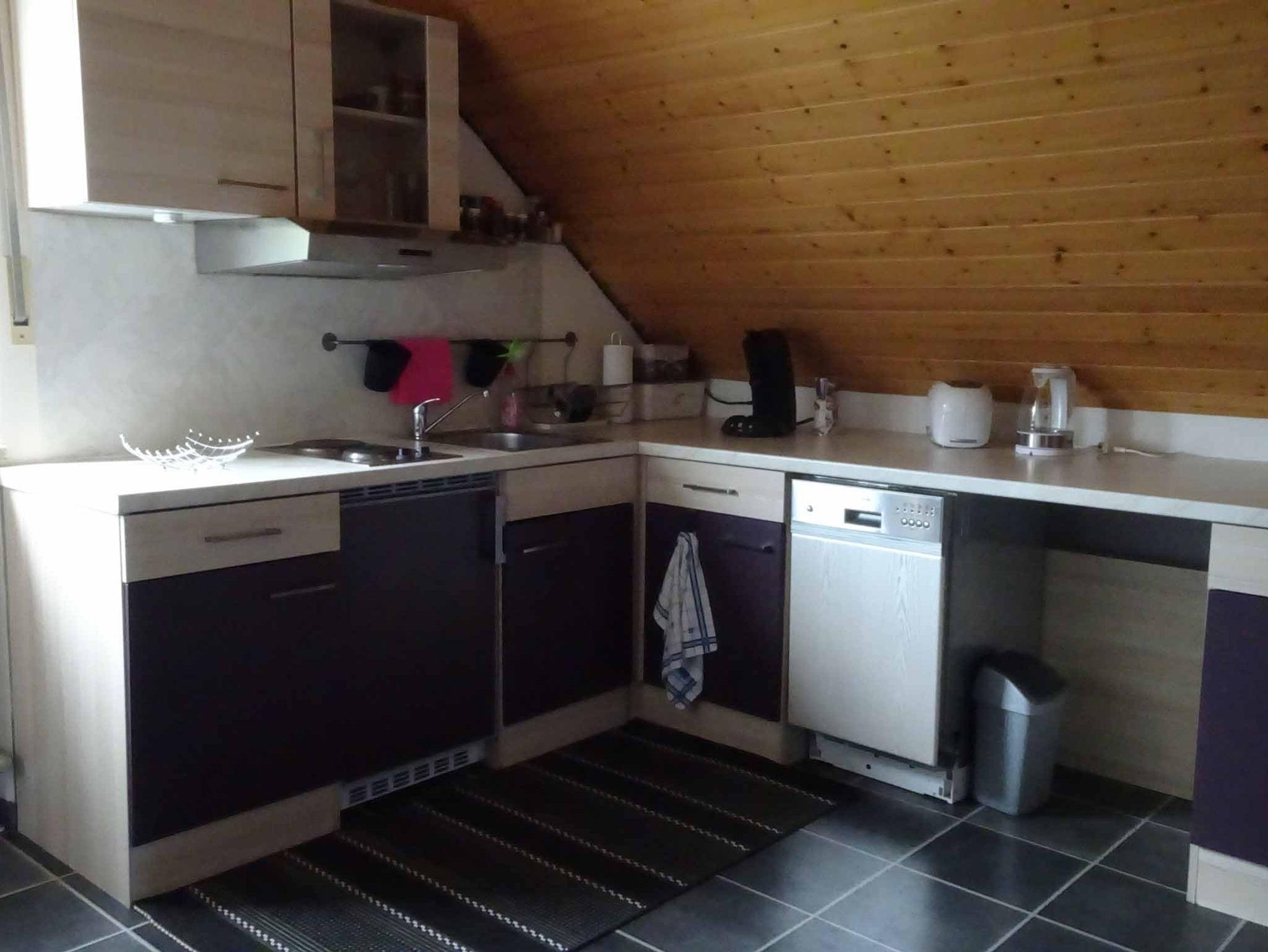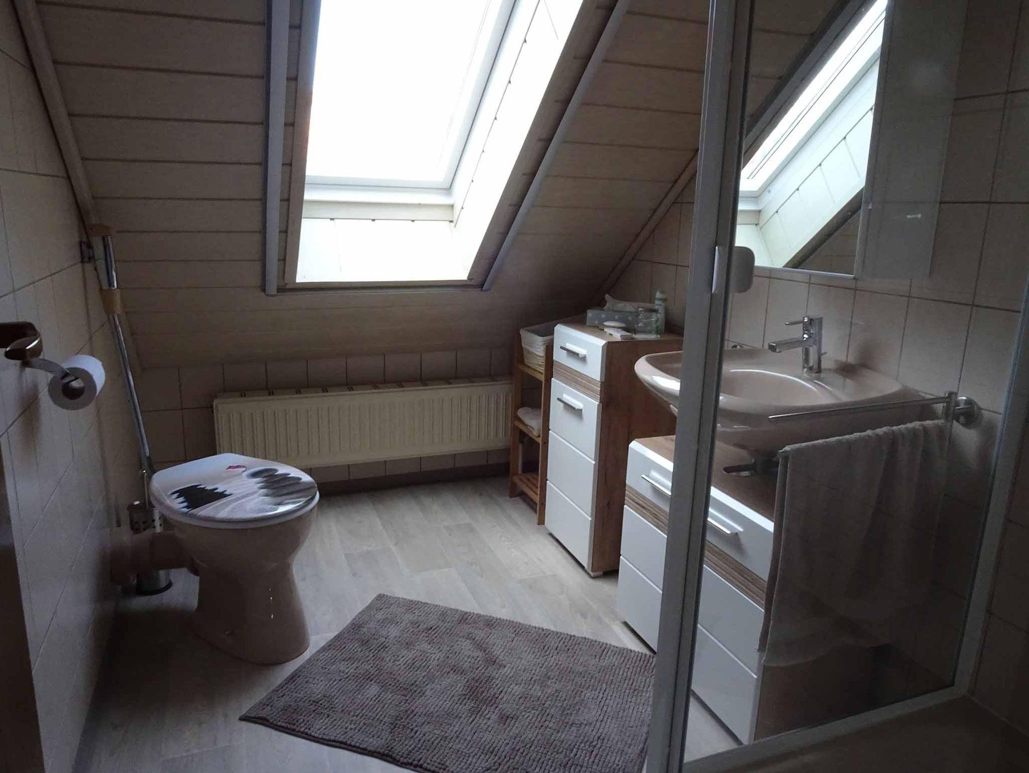 Die 50qm große Ferienwohnung liegt im Dachgeschoss und verfügt über einen Balkon. Das Schlafzimmer ist mit einem Doppelbett ausgestattet. Eine kombinierte Wohnküche mit Geschirrspüler, Teekocher, Kaffeemaschine, Mikrowelle und Ofen steht Ihnen zur Verfügung bereit. Das Badezimmer hat einen Fön. Bettwäsche und WLAN sind bereits im Preis enthalten. Kostenlose Parkplätze sind ebenfalls vorhanden.