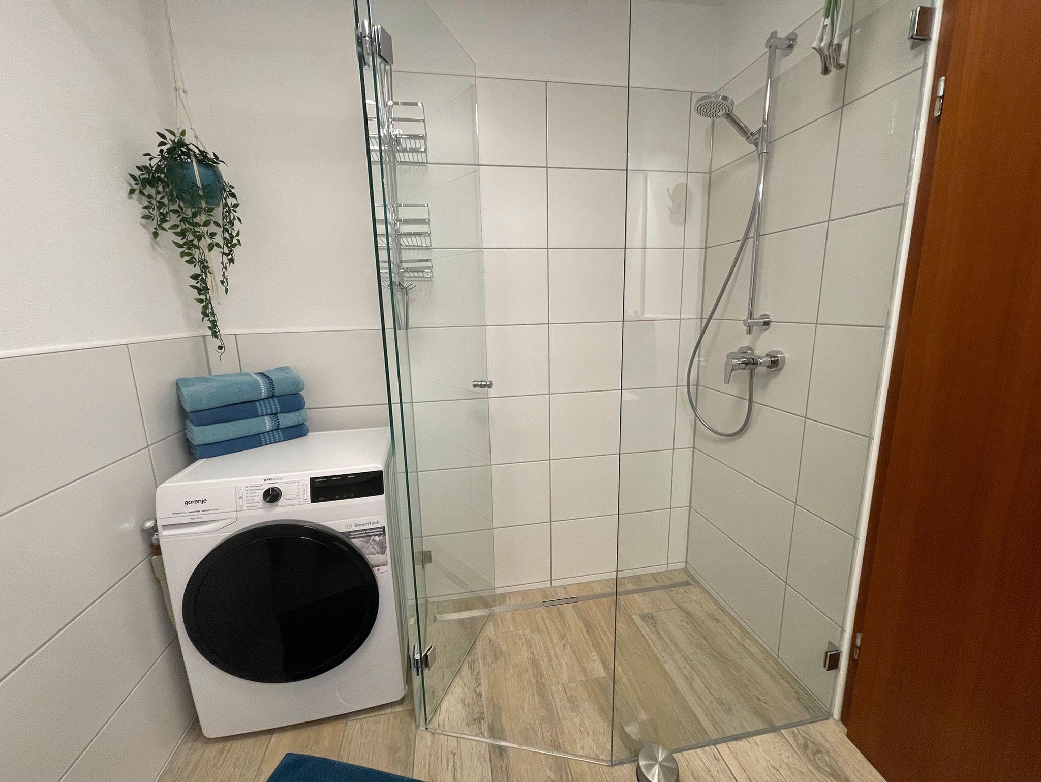 Die separate Küche mit Esstisch ist voll ausgestattet mit Spülmaschine, Kühl-Gefrierkombi, Kaffeemaschine, Nespresso, Mixer, Mikrowelle, reichlich Geschirr, sowie Gewürzen, Kaffee, Tee und Küchenwäsche. Das neue Bad hat eine bodengleiche Dusche sowie eine Waschmaschine, großen Spiegel, und ausreichend Beleuchtung. Alle Zimmer haben einen eigenen Zugang zum Aufenthaltsbereich mit großem Eßplatz und Schwedenofen, lassen sich voll verdunkeln und bleiben im Sommer angenehm kühl.