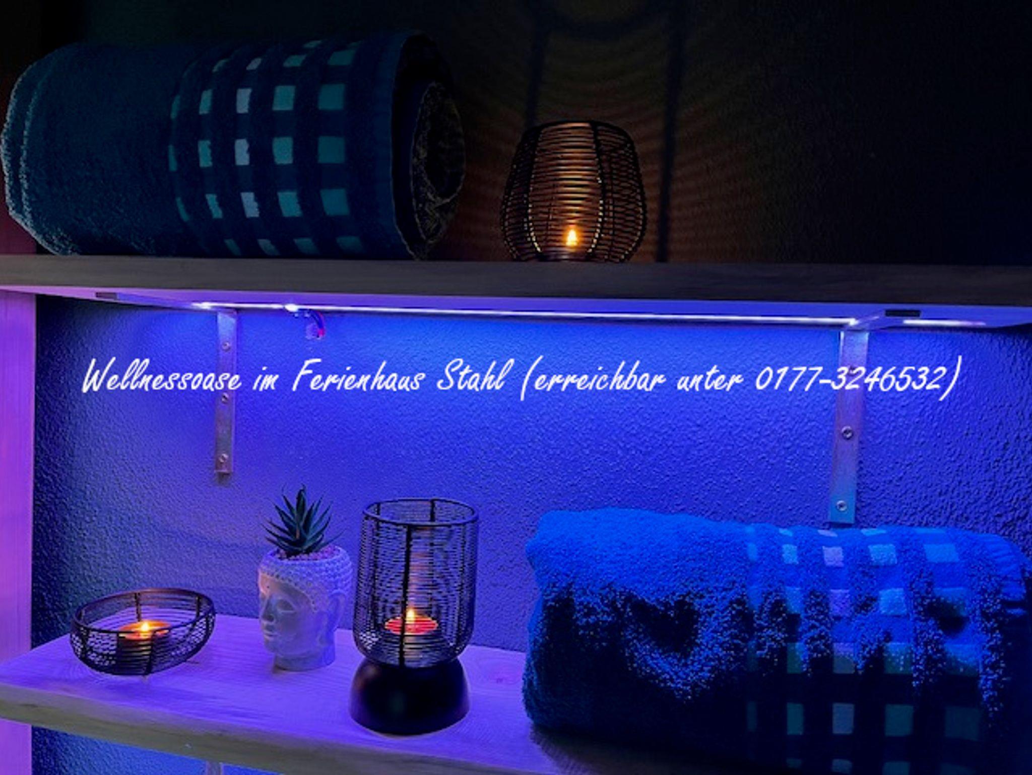 Sauna: Im Außenbereich der Ferienwohnung - Saunabenutzung nach Abrechnung des verbrauchten Stromes (0,80 € pro Kilowattstunde - dies wäre im Durchschnitt ca. 10,- € pro Saunaabend) - Saunahandtücher liegen bereit (Bademantel und Badeschlappen bitte mitbringen)