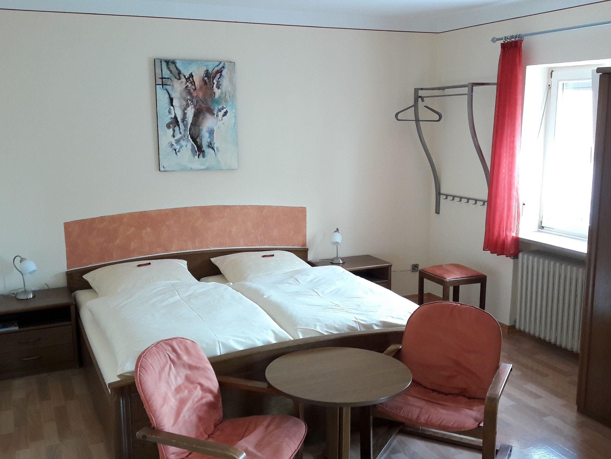 Ausgestattet mit Doppelbett, Sitzgruppe, DU/WC, Fön, TV in I. oder II. Etage.