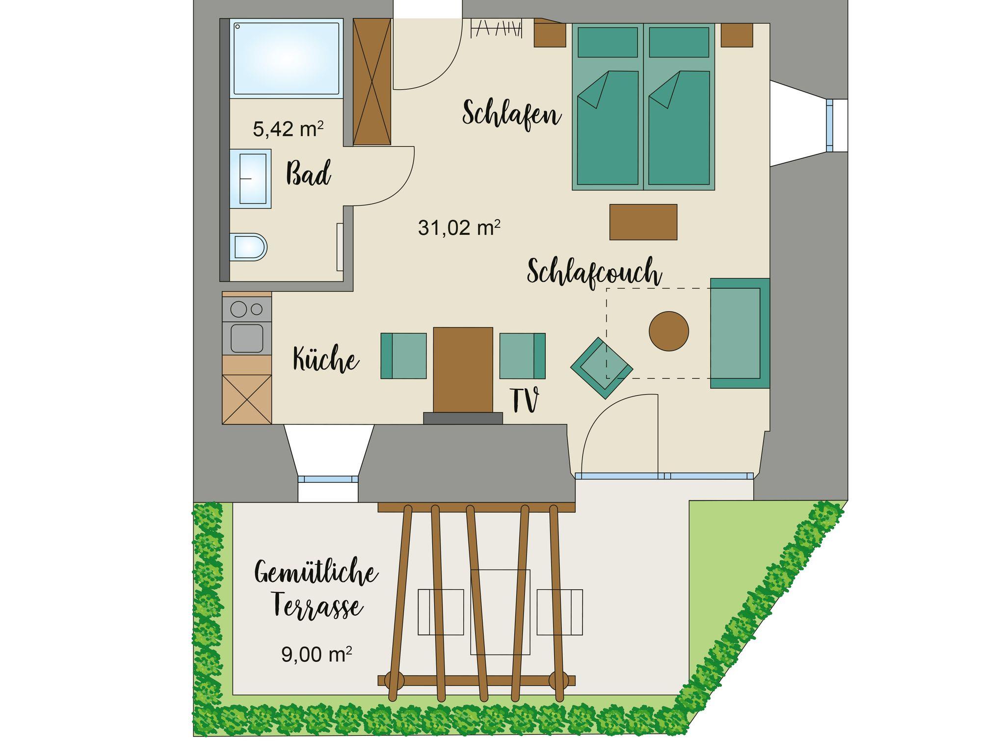 45 qm großes Einzimmerappartment