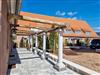 Terrasse: Sitzgarnitur und Liegen sowie einen Sonnenschirm
