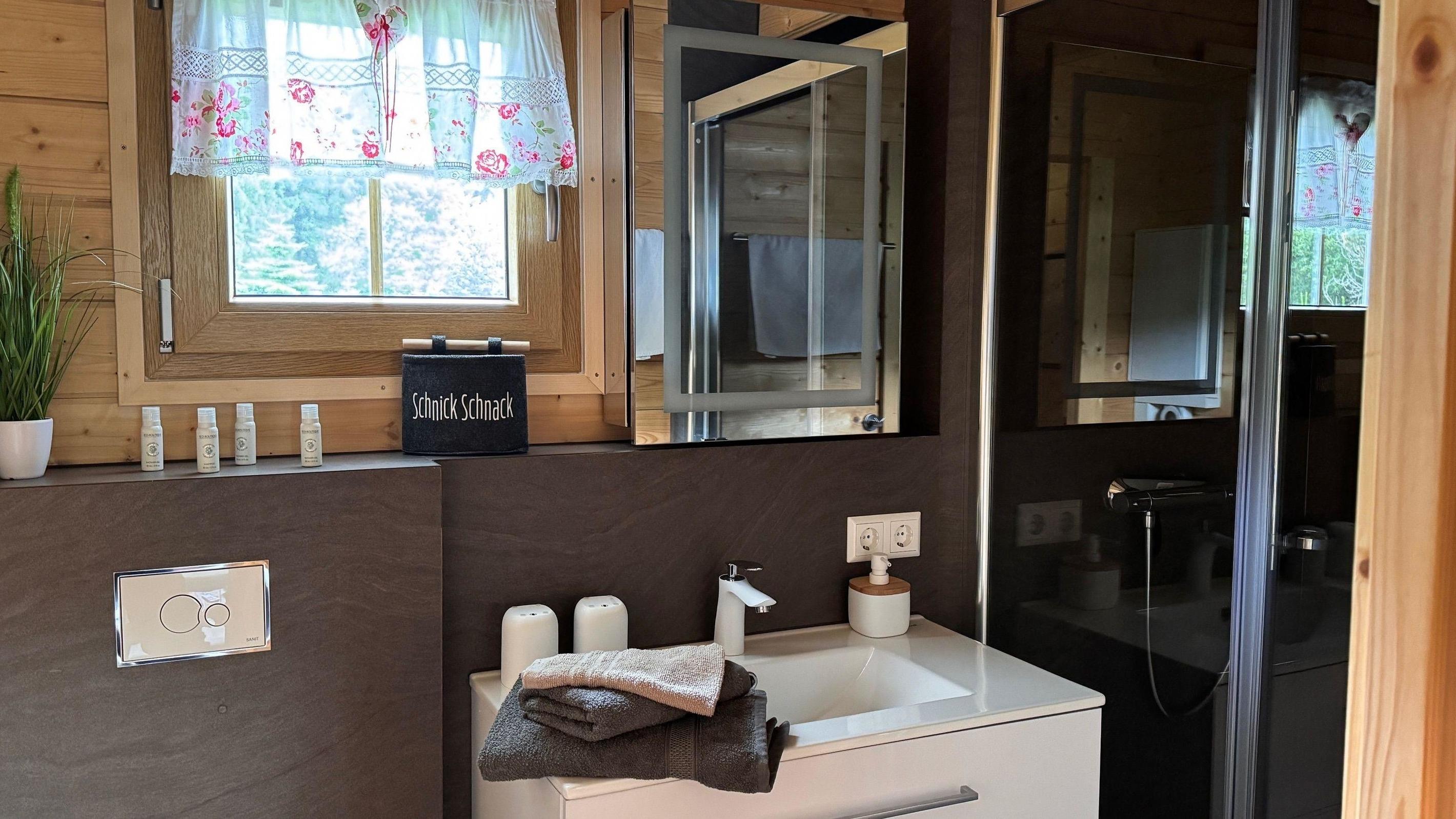 Bad mit Dusche,WC, Handtücher