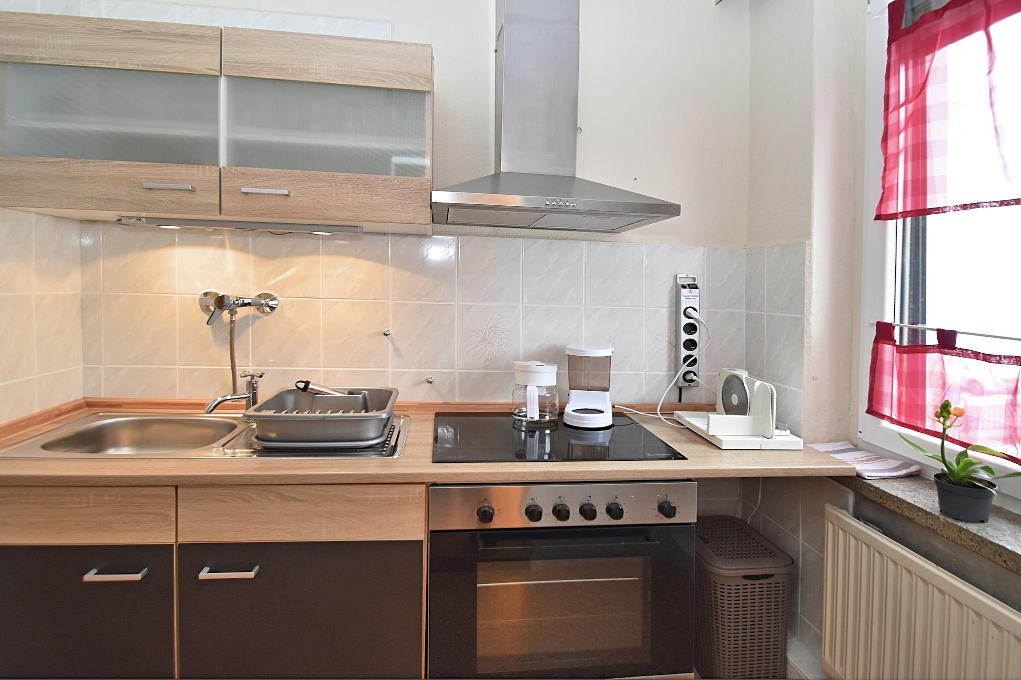 Denne praktiske og indbydende lejlighed ligger på første sal i Tannenbergsthal og er skræddersyet til små familier eller par. Det åbne køkken har keramisk kogeplade, ovn, mikroovn, køleskab med fryser og kaffemaskine, mens spisestuen - med satellit-tv, stereoanlæg og dvd-afspiller - sørger for muntre måltider og hyggelige filmaftener. Sovearrangementer er fleksible med to soveværelser, der kombinerer dobbeltsenge og sovesofaer. Et lyst badeværelse med bruser, håndvask og toilet afrunder det væsentlige. Familievenlige detaljer omfatter en børneseng, kravlegård, legeredskaber og kulgrill udenfor i den delte, delvist indhegnede have. En vaskemaskine, varme og strygebræt tilføjer komfort til længere ophold. Parkering er tilgængelig på stedet. Ideelt beliggende kun 200 m fra skovstier og 500 m fra restauranter, markeder og ridemuligheder. Uanset om man udforsker langrendsruter (300 m), kører på nærliggende skiløjper (6 km) eller slapper af ved den offentlige pool (8 km), vil gæsterne finde masser af sæsonbestemte aktiviteter inden for rækkevidde.