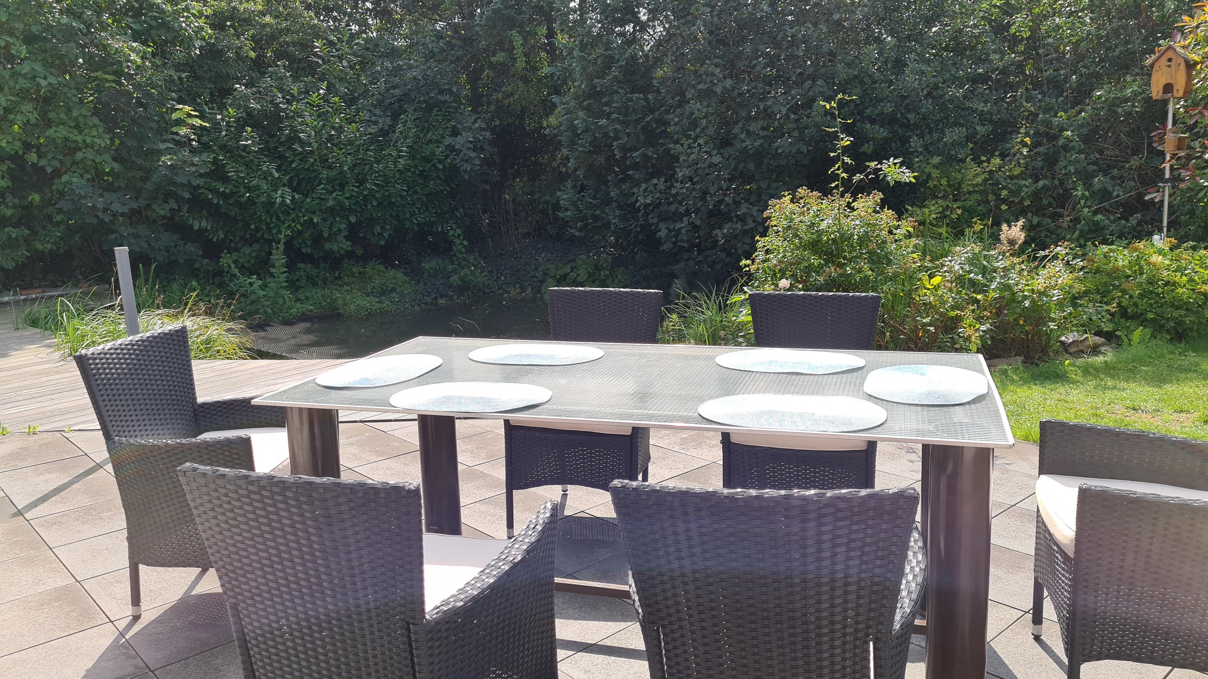 Eltern werden darauf hingewiesen, dass sie wegen des Teichs im Garten des Ferienhauses ganz besonders auf ihre Kinder aufpassen müssen. Das Gleiche gilt für Behinderte und ihre Begeietpersonen. Der Teich ist nicht zum Baden und Spielen geeignet und der Vermieter kann keine Haftung übernehmen. Der Garten ist rundum durch eine abwechslungsreiche Bepflanzung und Hecke begrenzt. Er ist nicht komplett eingezäunt.