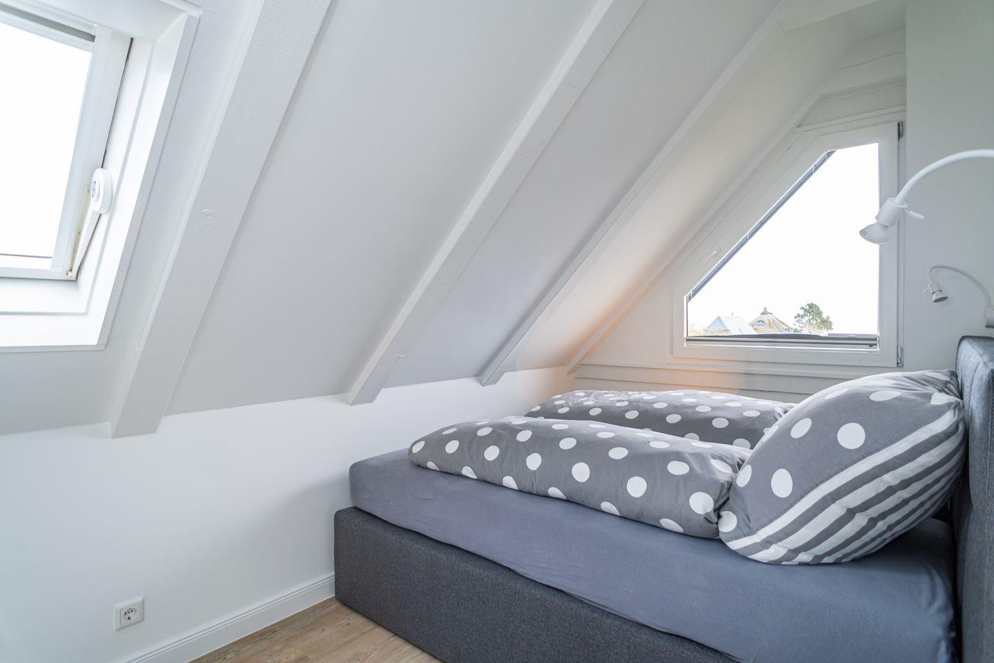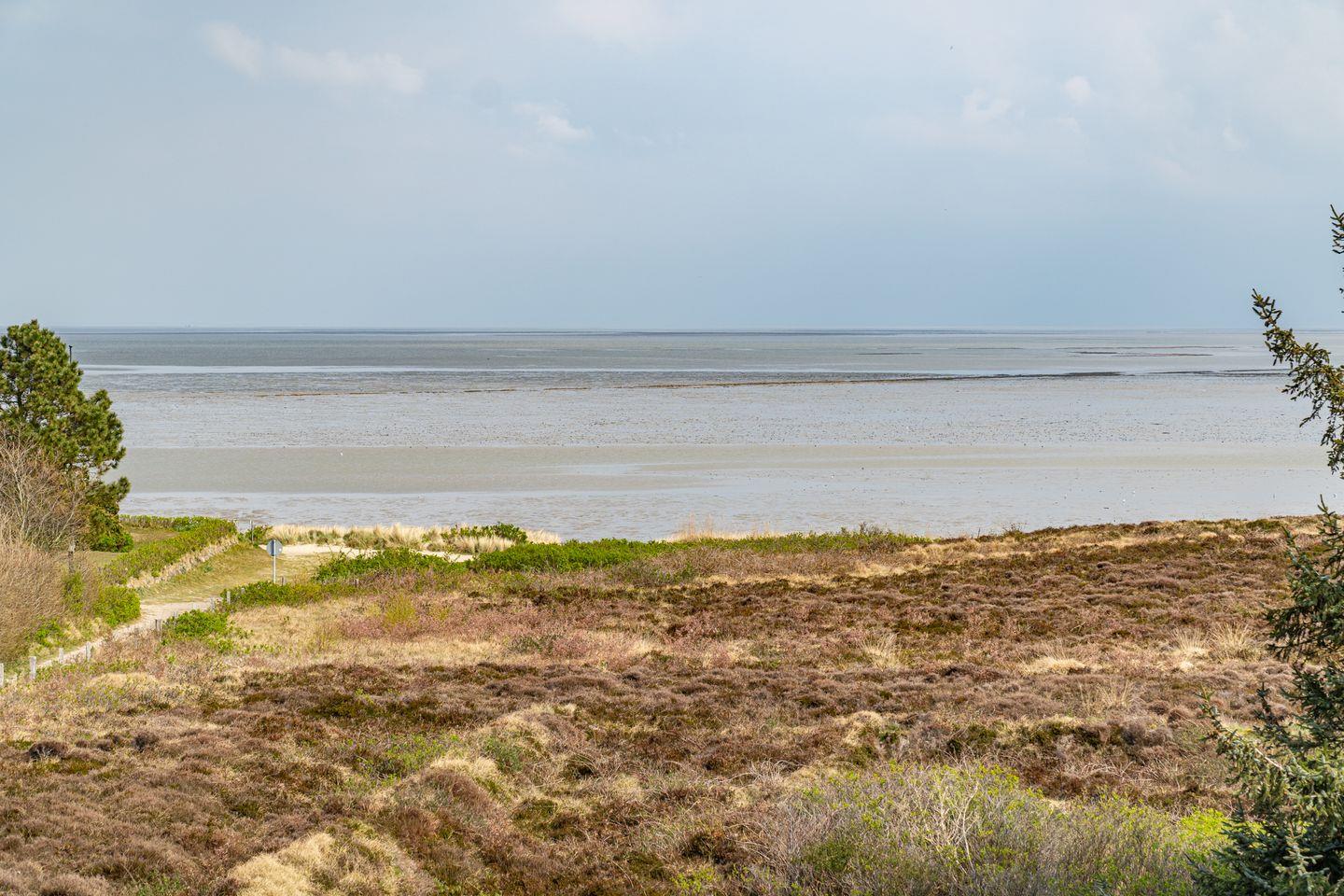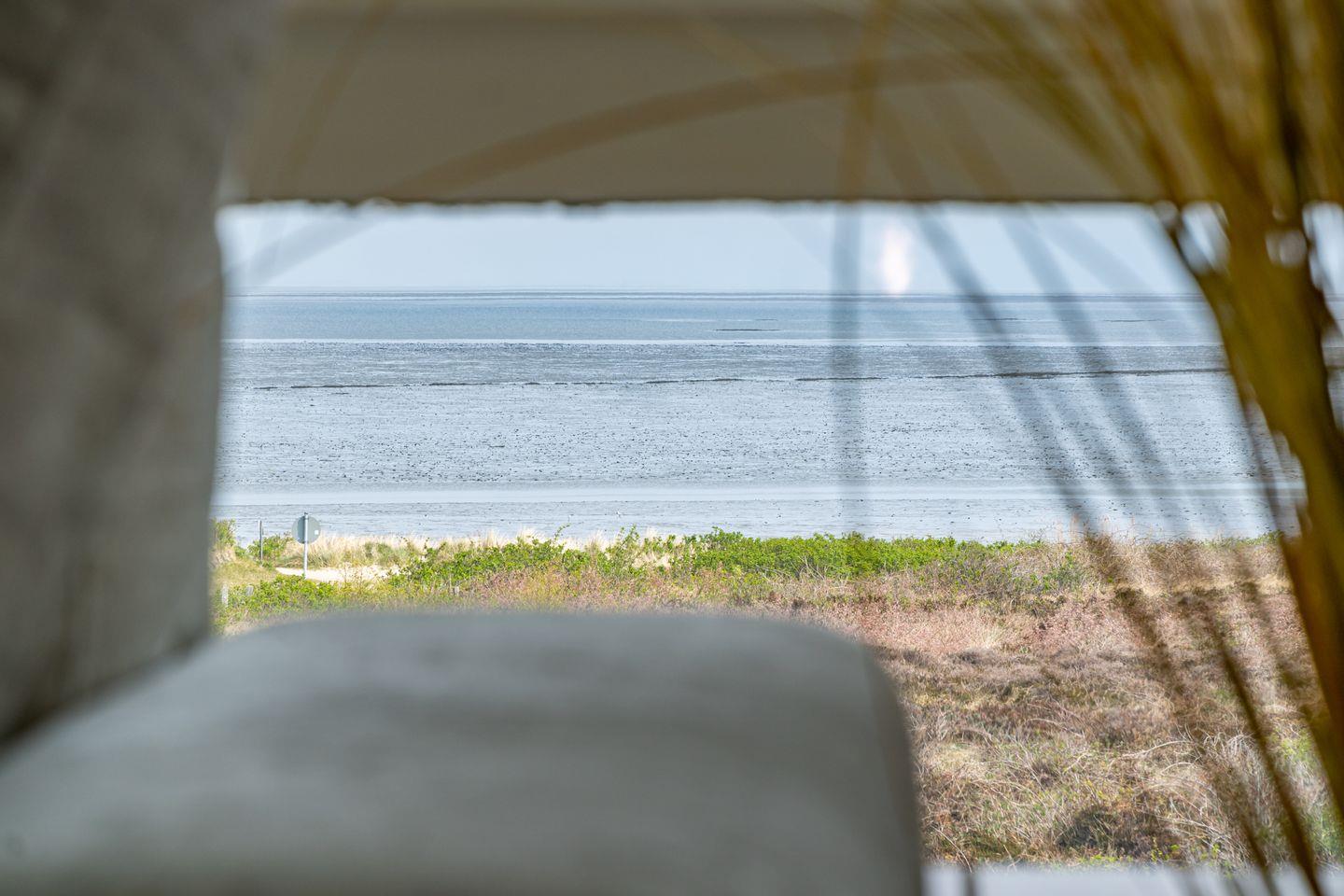 Die verglaste Giebelfront gibt den Traumblick auf Watt und Heide, wie auch aus den anderen Räumen frei. Den Strand erreichen Sie über den angrenzenden Fußweg in ca. 2 Min.