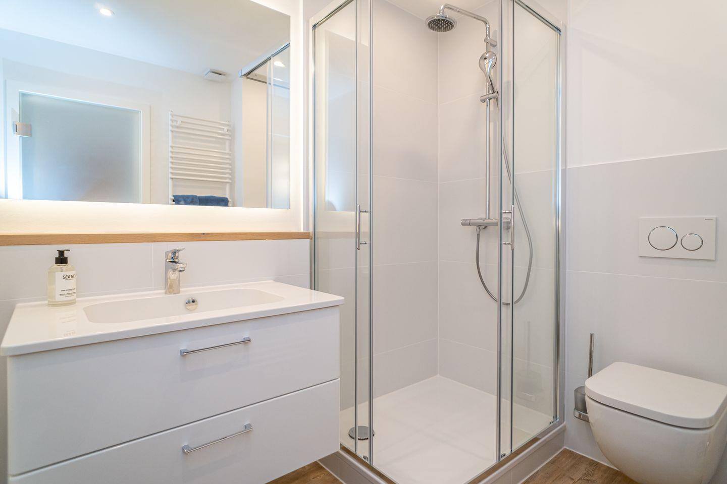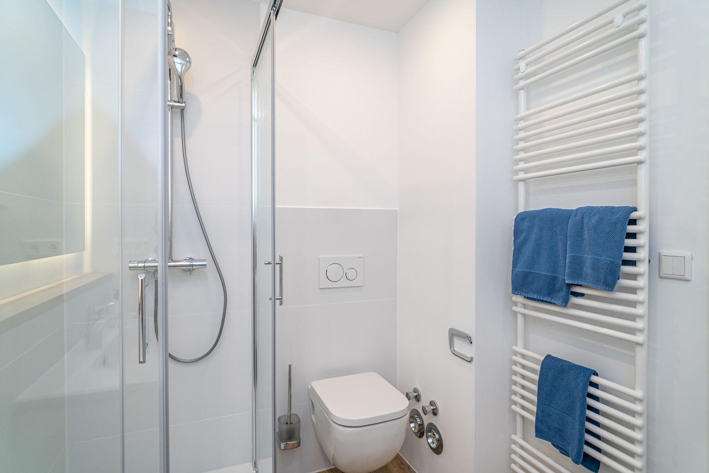 Das Appartement verfügt über zwei separate Schlafzimmer, die erholsame Nächte für Familien oder Paare ermöglichen. Insgesamt stehen vier Schlafmöglichkeiten zur Verfügung. Das Badezimmer ist mit einer bodengleichen Dusche, Waschbecken, WC, Spiegel und Haartrockner modern und funktional gestaltet. Zudem sorgt eine Zentralheizung für angenehme Temperaturen zu jeder Jahreszeit. Eine Waschmaschine und ein Staubsauger sind vorhanden, was längere Aufenthalte besonders komfortabel macht.