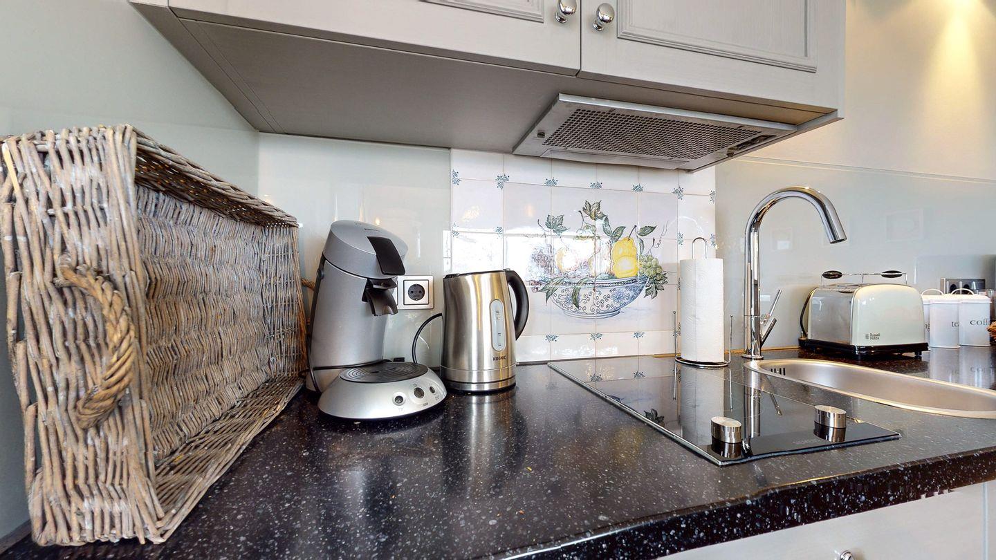 integriertem Essbereich und einer voll ausgestatteten Küchenzeile eingerichtet.