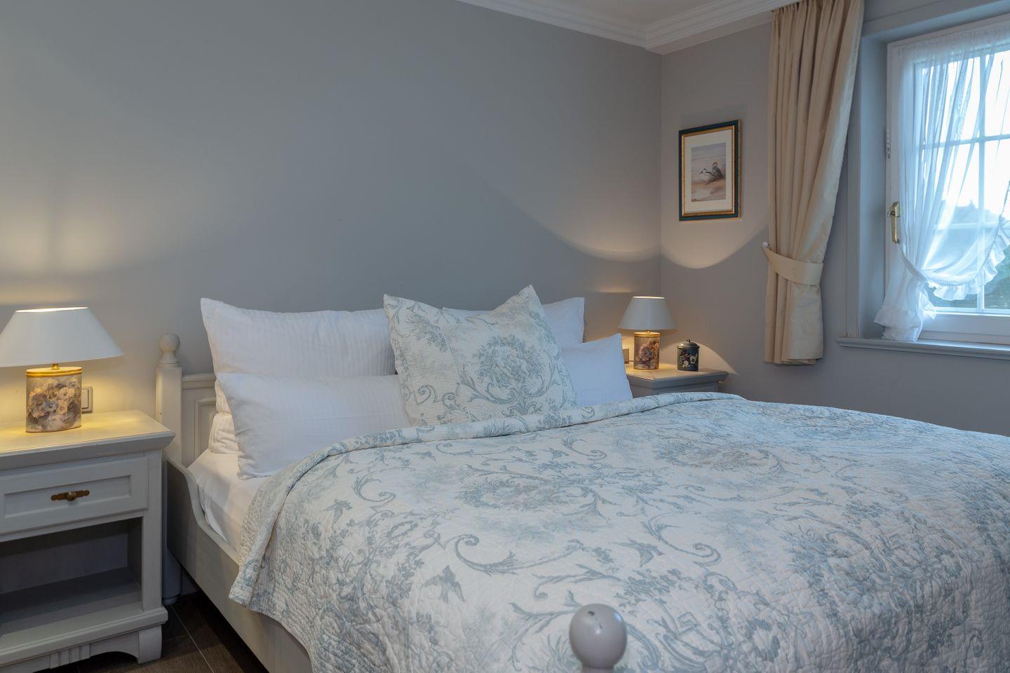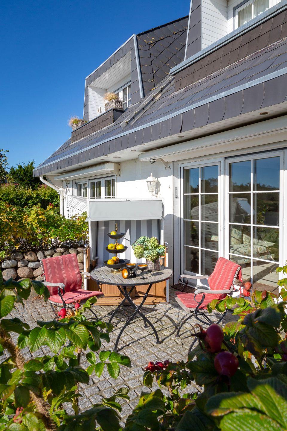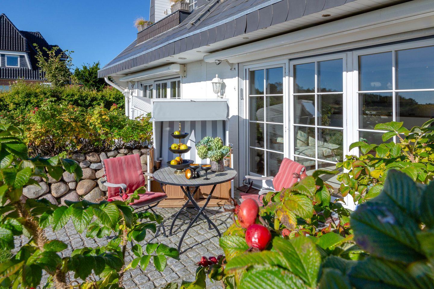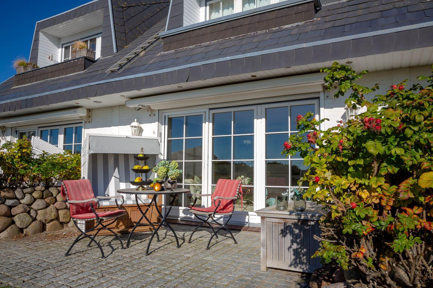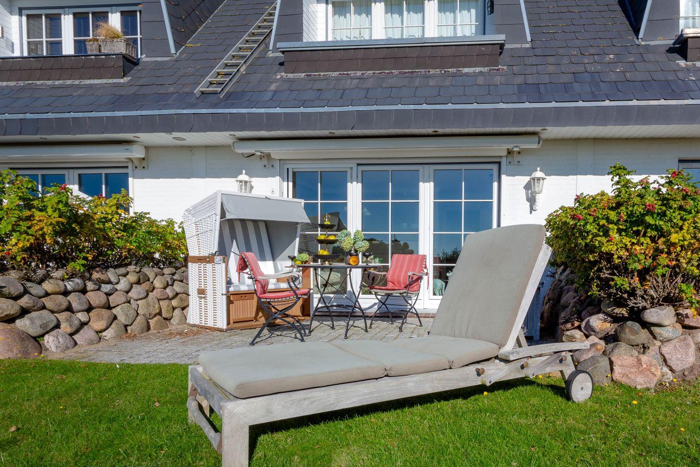 In idyllischer Lage direkt am Wattenmeer genießen Sie in Munkmarsch ruhige Stunden fernab des großen Trubels. Ganz nebenbei bekommen Sie in diesem neu gestalteten Quartier einen der schönsten Ausblicke der Insel geboten. Zwei Personen finden in dieser stilvoll eingerichteten Wohnung einen Ort zum Entspannen und Wohlfühlen. Bequeme, mit englischem Leinen bezogene Polstermöbel, hochwertige Sylter Holzeinbauten, ein moderner Orientteppich und liebevolle Details wie ein altes Schaukelpferd von Hoppe, Westerland, schaffen die Wohlfühl-Atmosphäre, die diese Wohnung auszeichnet. Der großzügige Wohnraum mit seiner nur durch einen Tresen abgetrennten Küche bietet Ihnen ein schönes, offenes Ambiente. Das Schlafzimmer mit TV, ausgestattet mit komfortablen Betten, sowie das Marmorbad mit einem Waschtisch von Kohler gehören ebenso zu dieser Wohnung wie ein Bose-Musiksystem und WLAN. Auf einer großen Terrasse, die wir auch mit Gartenmöbeln von Garpa ausgestattet haben, blicken Sie direkt auf das Wattenmeer. Auf diesem naturnahen Heidegrundstück entspannen Sie perfekt.