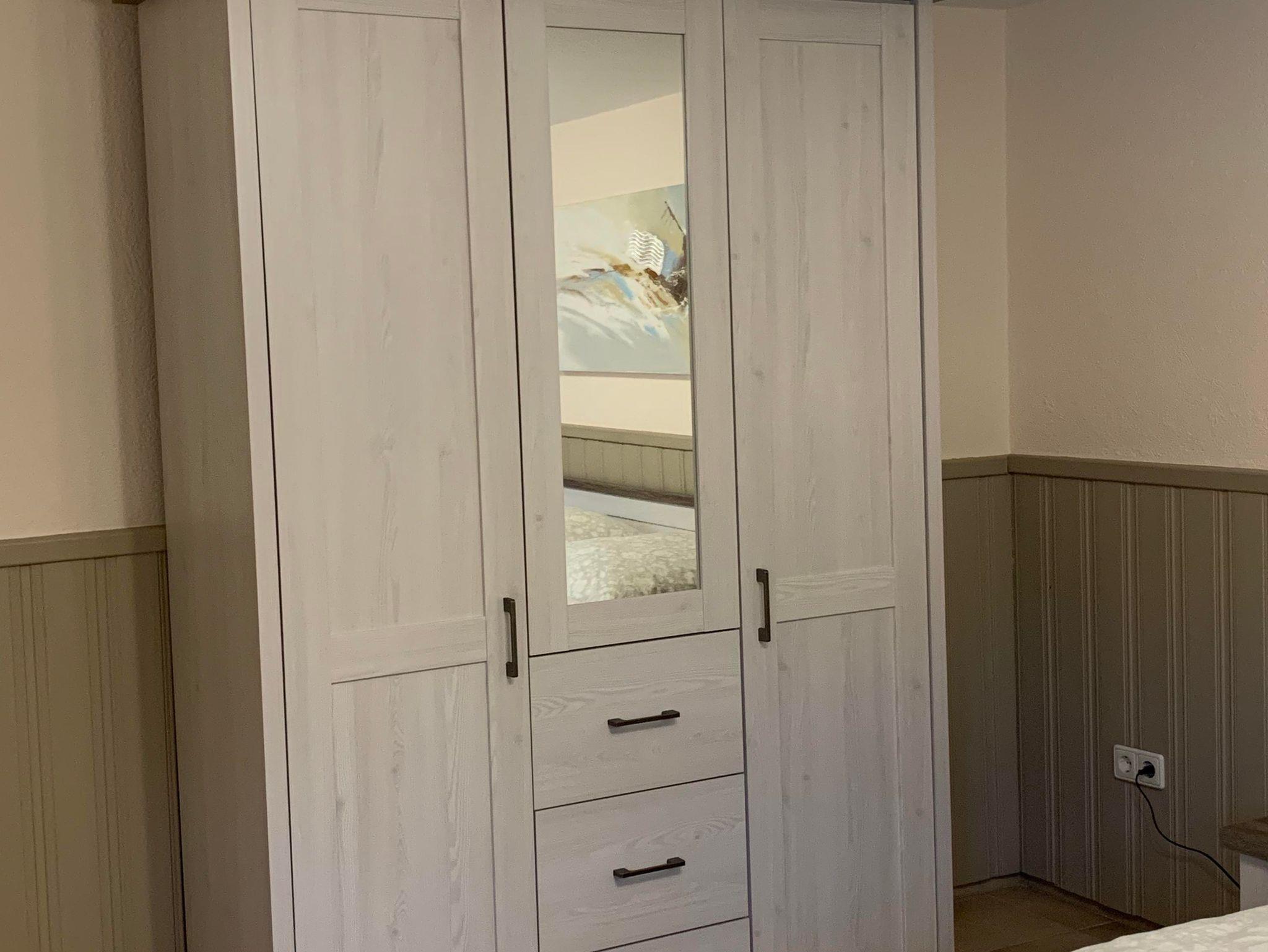 Das zweite Zimmer ist ebenfalls mit Kleiderschrank, zwei 1,40m breiten Betten, Nachtschränken, TV u. einer Kommode ausgestattet.