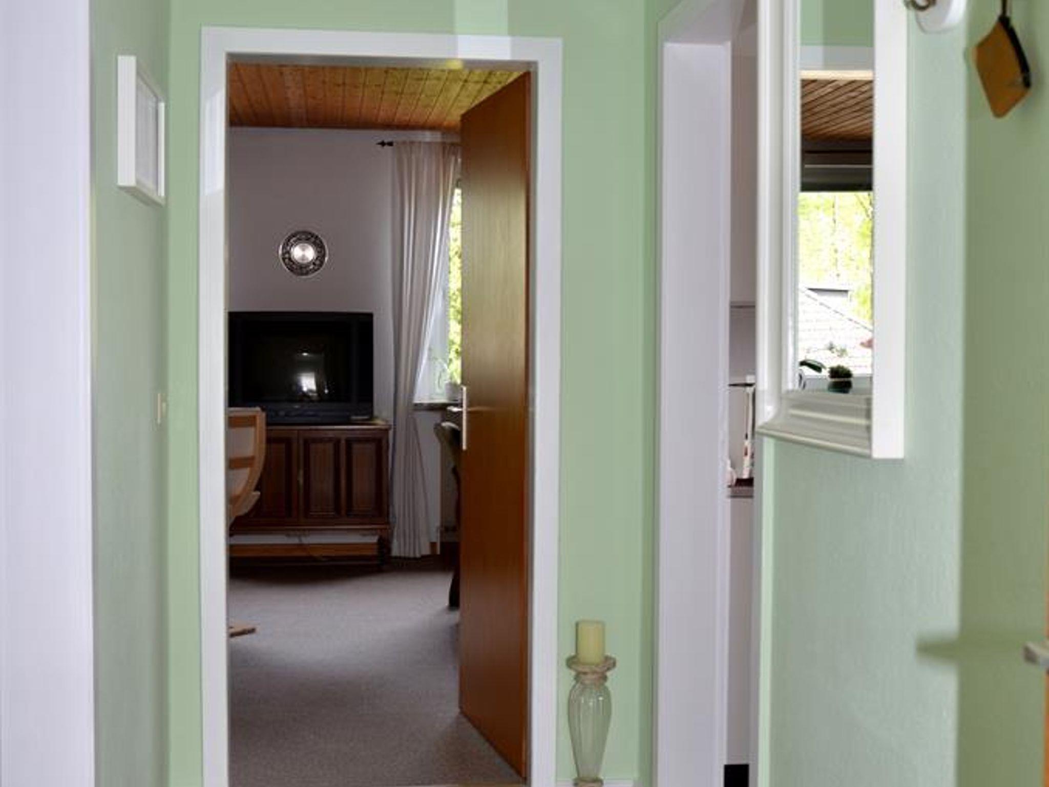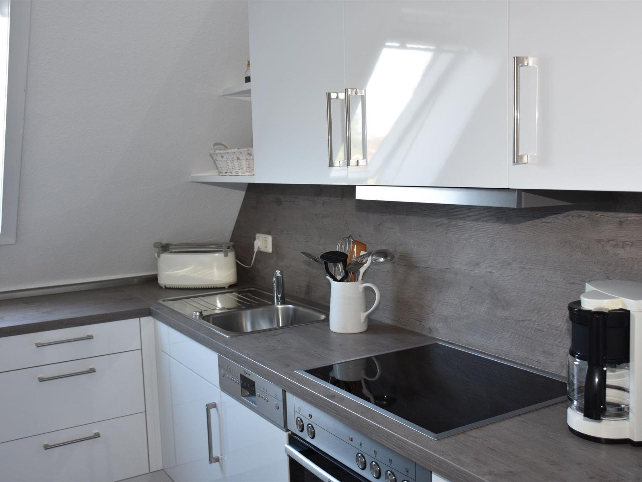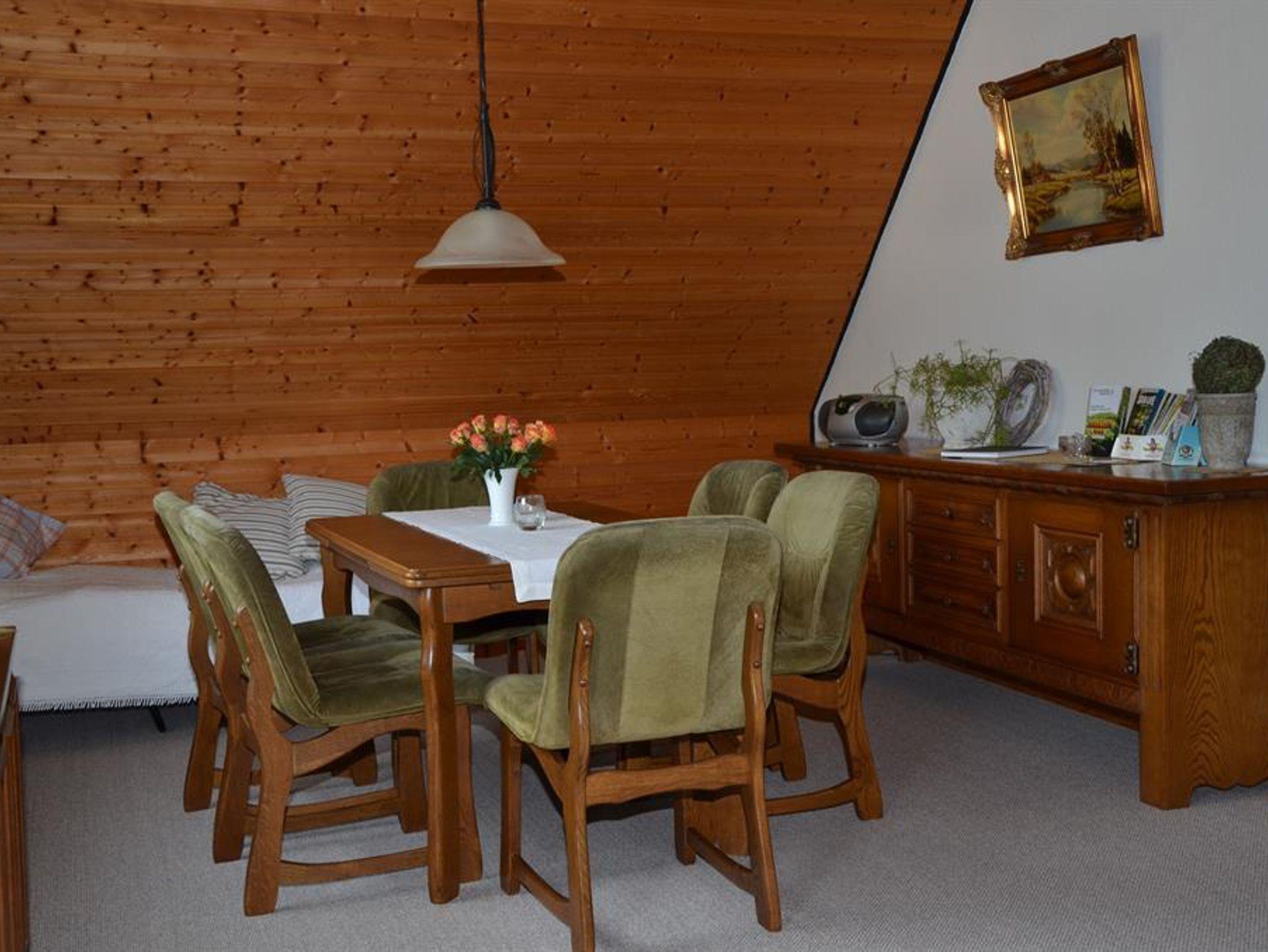Gemütlich eingerichtete Ferienwohnung in der oberen Etage eines Einzelhauses. Wohnzimmer mit Essecke, 2 Schlafräume jeweils mit Doppelbetten, voll eingerichtete Küche, Badezimmer. Zustellbett ist auf Anfrage möglich. Es steht Ihnen W-Lan zur Verfügung. Diese Wohnung ist eine Nichtraucherwohnung.