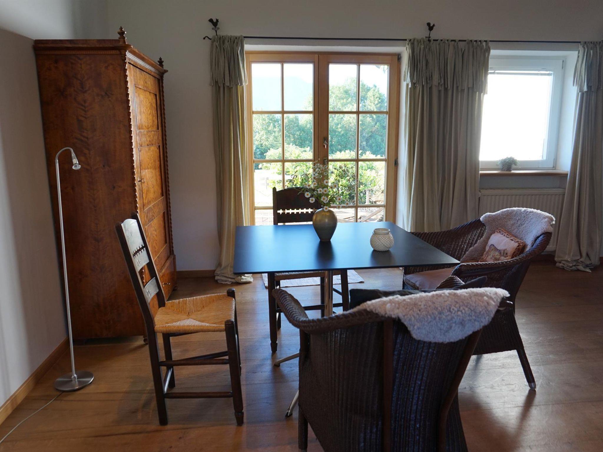 Gemütliches Sudio mit Terrasse und große 2-Zi-Ferienwohnung mit Balkon am Ortsrand von Murnau (Hechendorf) mit traumhaften Blick ins Naturschutzgebiet Murnauer Moos und Alpenkette. Ideal für alle, die gerne wandern, spazieren gehen, Fahrrad fahren, Berg steigen oder einfach ausspannen möchten.