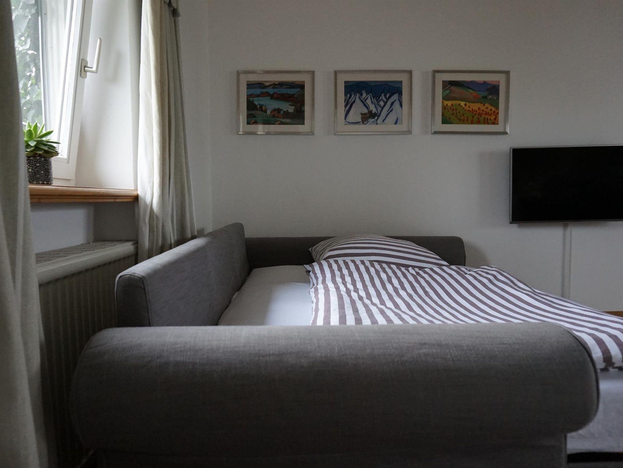Gemütliches Studio (35m²) mit Terrasse und Garten am Rande des Murnauer Mooses mit einem traumhaften und unverbautem Bergblick. Das Wohnzimmer besteht aus einer Sitzgelegenheit mit Couchgarnitur, Couchtisch und SAT-TV sowie einem Essplatz mit Tisch und 4 Stühlen. Die Galerie mit den zwei Betten (80 cm und 90 cm) erreicht man über eine Leiter. Wer das nicht mag, kann unten das Sofa in ein Bett (140 cm x 200 cm) verwandeln. Die Küchenzeile ist mit Microwelle, Spülmaschine, Ceranfeld mit 2 Platten, Kühlschrank, Spüle, Dolce Gusto Espressomaschine, Wasserkocher, Thermoskanne, Teekanne und den üblichem Zubehör ausgestattet. Das Studio liegt am Ortsrand von Murnau (Hechendorf) und man hat einen traumhaften Blick ins Moos und zum Heimgarten, ideal für alle, die gerne wandern, spazieren gehen, Fahrrad fahren, Berg steigen oder einfach ausspannen möchten. Hunde auf Anfrage.