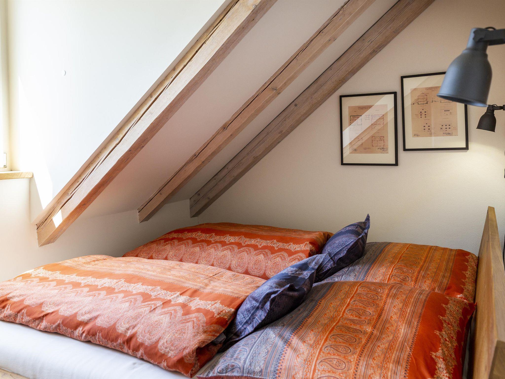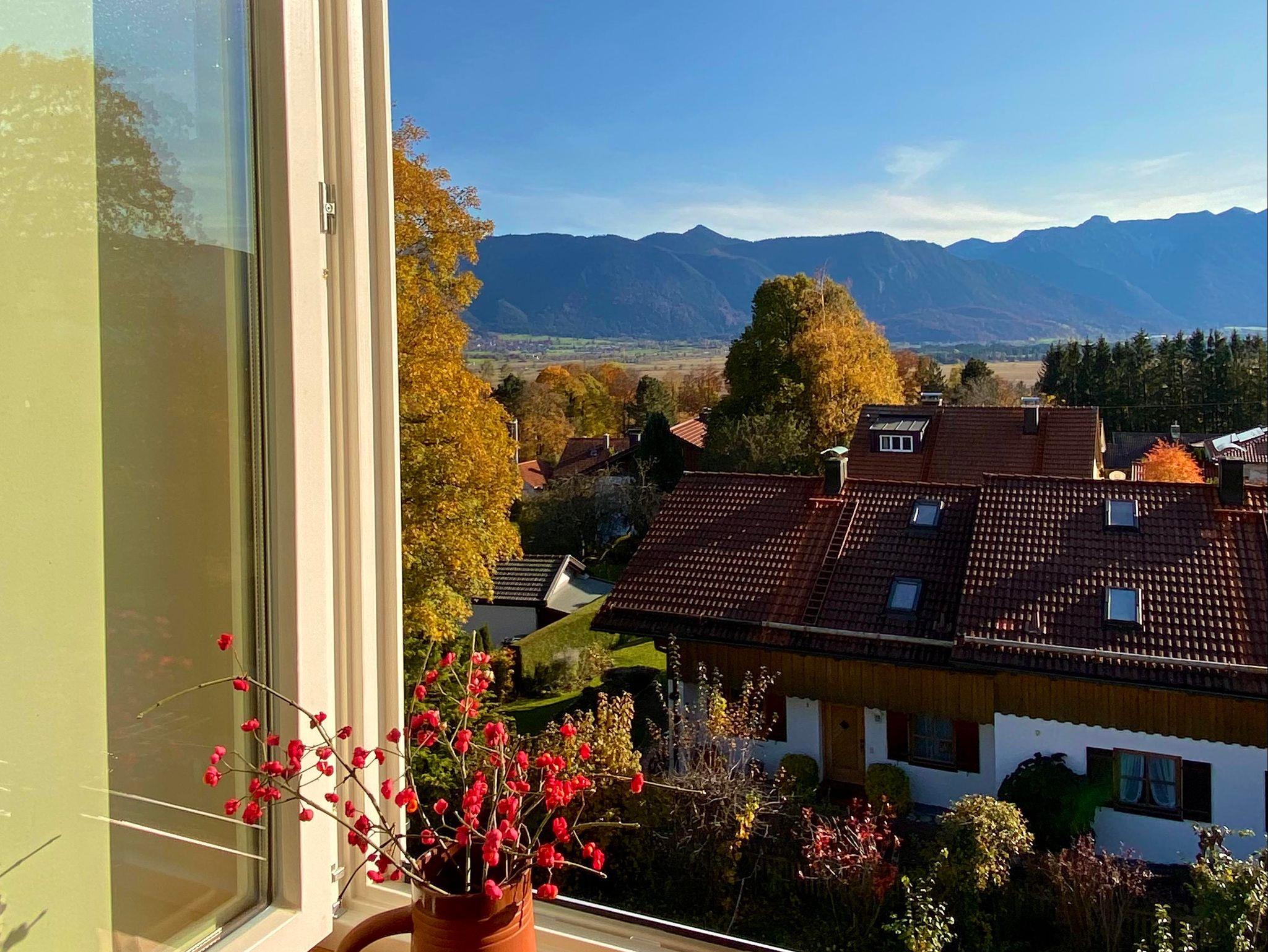 Sie sind zu Gast in einer komplett neu ausgebauten hochwertigen 3-Zimmer-Dachwohnung mit weitem Blick von allen Fenstern (außer Nordseite) über das Murnauer Moos auf die Alpen. Das liebevoll ausgestattete, mit handverlesenen Materialien und modernster Technik eingerichtete Schmuckstück mit freigelegtem Fachwerk bietet neben einer begrünten Dachterrasse mit 15 qm Nutzfläche einen eigenen separaten Wohnungszugang. Zwei separate Schlafzimmer. Studierstübchen geeignet für workation/ Laptoparbeitsplatz. WLAN in der Wohnung und auf der Dachterrasse.