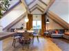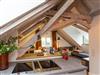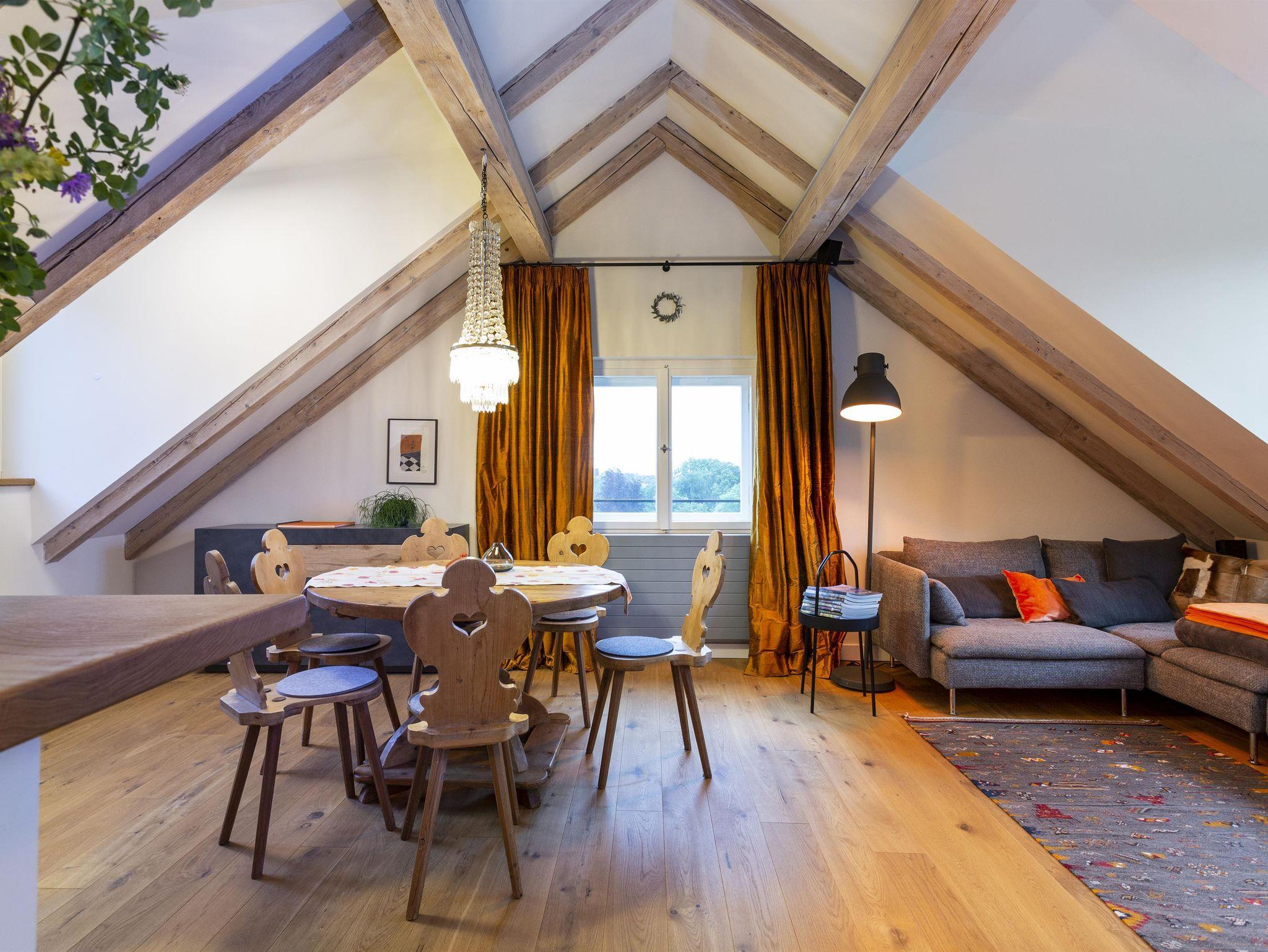 Dann geht es vorbei am Schlafzimmer, das an die komfortable Kajüte eines Segelschiffs erinnert, sowie am angrenzenden zweiten Schlaf- bzw. Arbeitszimmer. Hobbyköche nehmen sicher die offene Küche mit der voll ausgestatteten Einrichtung in Augenschein. Alpine Wanderfreunde werden sich an dem Südtiroler Bauerntisch wie zuhause fühlen. Wer es ganz bequem haben möchte, nimmt auf der Eckcouch Platz und lässt den Blick im Raum schweifen, der wahrscheinlich anerkennend bei einem der „Teufel“-Lautsprecher der Dolby-Digitalanlage hängen bleibt. Mit absoluter Sicherheit aber werden nach kürzester Zeit alle Blicke in die Gauben gehen, um diesen in Murnau einzigartigen Weitblick zu genießen und dann Tag für Tag den weiten Himmel zu erleben.