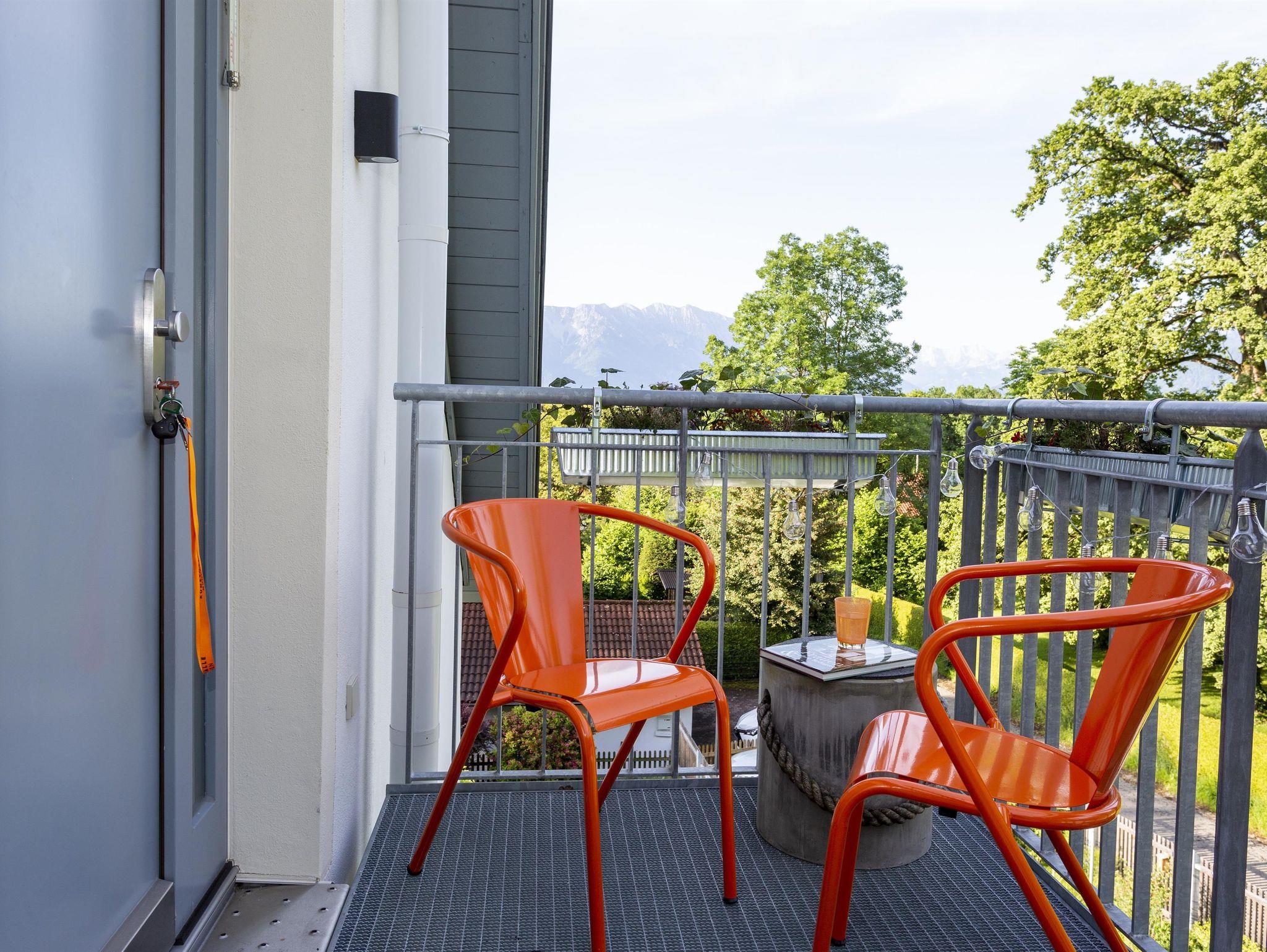 Sie sind zu Gast in einer komplett neu ausgebauten hochwertigen 3-Zimmer-Dachwohnung mit weitem Blick übers Murnauer Moos auf die Skyline der Alpen. Das liebevoll ausgestattete und mit handverlesenen Materialien sowie modernster Technik eingerichtete Schmuckstück mit freigelegtem Fachwerk bietet neben einer begrünten Dachterrasse mit 15 qm Nutzfläche einen eigenen separaten Wohnungszugang.