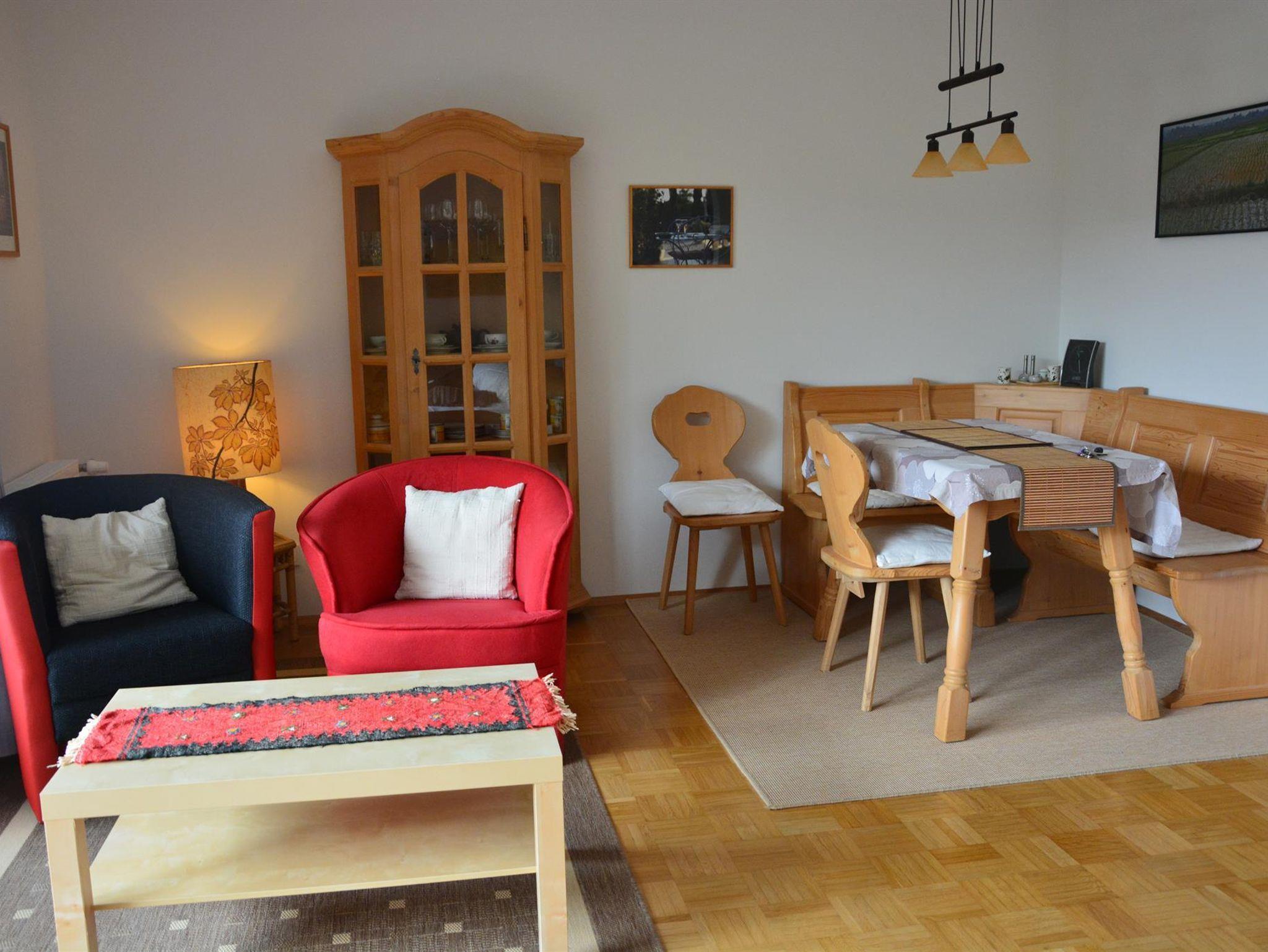 Unsere gemütliche Ferienwohnung befindet sich in ruhiger Lage unterhalb des Seidlparks, am Südrand von Murnau, mit einem wunderschönen Blick in die Berge. Die 41qm große Wohnung ist für zwei Personen geeignet und besteht aus einem großen Wohn- & Schlafraum, einem Bad, einer separaten gut ausgestatteten Küche und einer großen Süd-Terrasse mit Blick in die Berge.