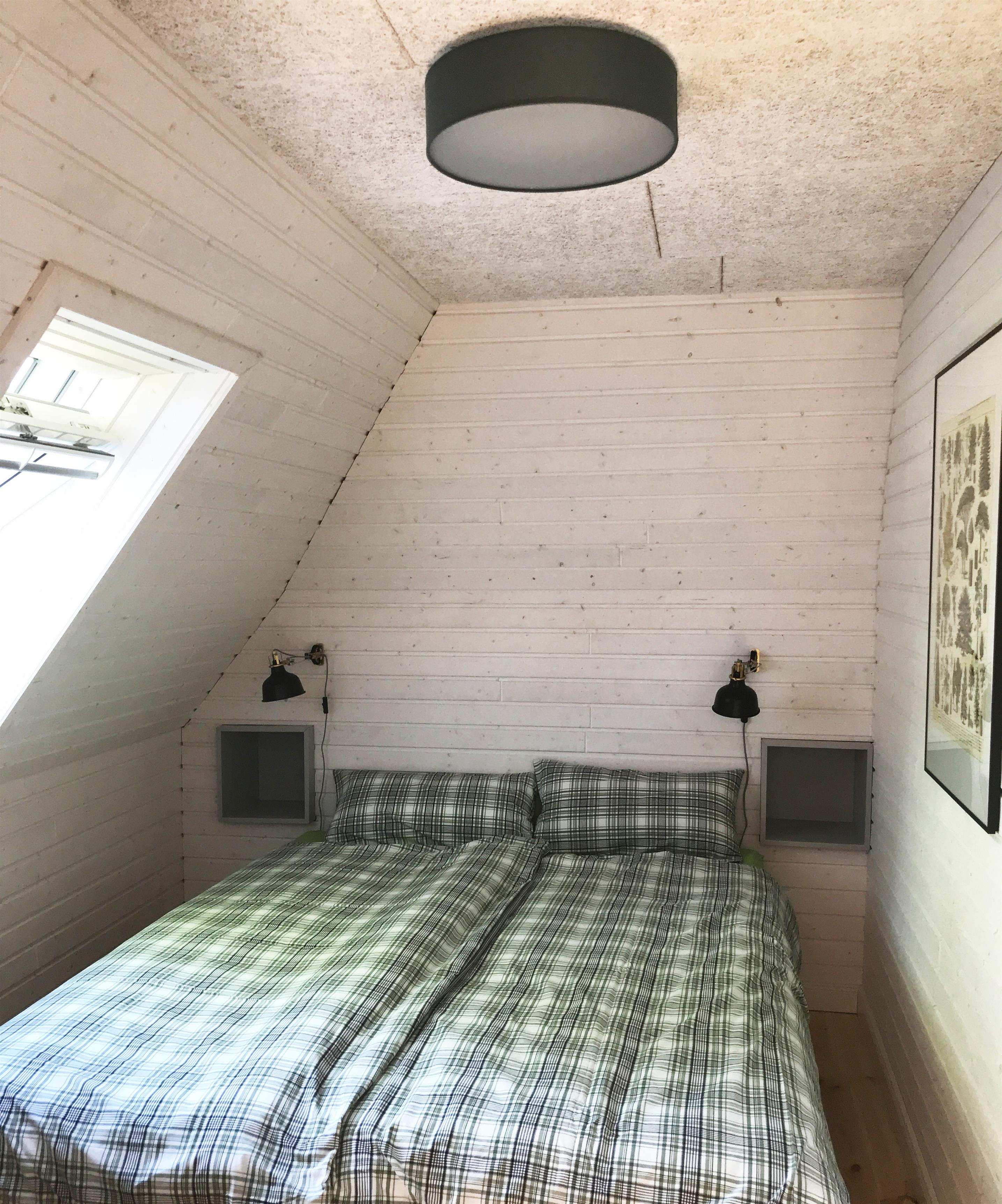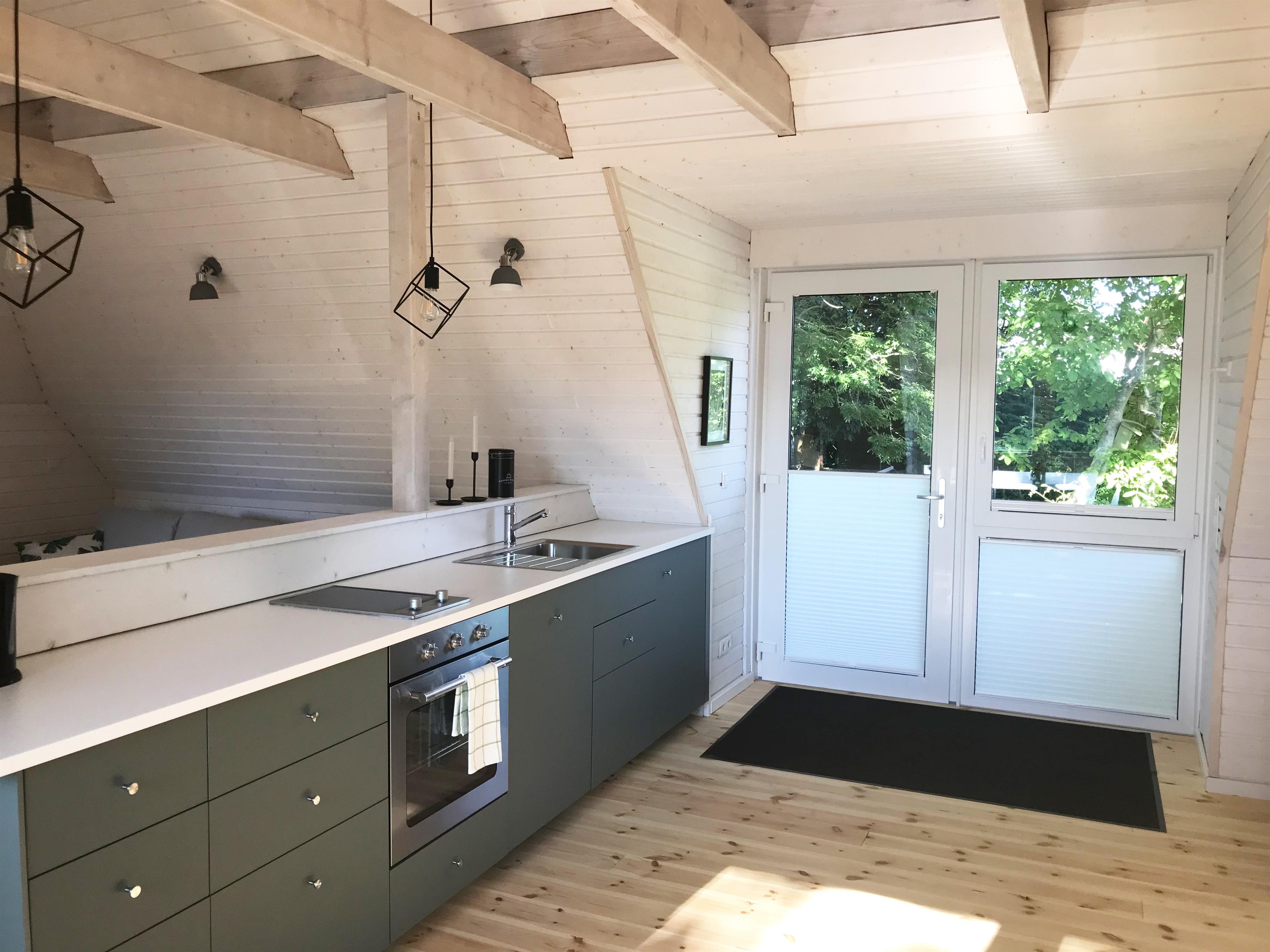 Die "Waldwohnung" ist eine moderne, im skandinavischen Stil eingerichtete Ferienwohnung im Dachgeschoss für bis zu zwei Personen. Die Wohnung besteht aus einem offenem Wohn- und Esszimmer sowie einer gut ausgestatteten Küche die über eine halbhohe Wand vom Wohnraum abgetrennt ist, sowie einem gemütlichen Schlafzimmer und einem großzügigen Bad. Die Küche verfügt über einen Backofen mit Kochfeld, einen Geschirrspüler, eine Mikrowelle und einen Kühlschrank mit Gefrierfach. Im Schlafraum ist ein Doppelbett mit Blick auf einen wandhängenden Fernseher vorhanden. Im Badezimmer ist eine großzügige Dusche mit verglaster Duschkabine, ein Waschtisch mit Stauraum und ein WC. Die Wohnung erschließt sich über eine kurze Treppe mit vorgelagertem Balkon. Aus der im Dachgeschoss liegenden Ferienwohnung blickt man in den großen grünen Garten und die Wipfel der Bäume, die das Grundstück umsäumen. In der Einrichtung spiegelt sich dies Thema wieder. So erschließt sich der Name "Waldwohnung". Die Fußböden sind aus geölten Holzdielen oder rustikalen Fliesen in warmen Farben. Die Wände sind im skandinavischen Design mit lasierten Brettern in weiß verkleidet, die Deckenbalken - ebenfalls weiß lasiert - sind sichtbar. Große vollverglaste, bodentiefe Gauben lassen viel Tageslicht in die helle Wohnung. Genießen Sie von der großzügigen Terrasse, das Rauschen der Blätter, das vielstimmige Vogelkonzert, das Spiel von Licht und Schatten und den Blick in die Bäume und den schleswig-holsteinischen Himmel. Zu der Wohnung gehört eine sehr große voll möblierte Terrasse mit Sonnenliege, Tisch und Stühlen, sowie Grill und Sonnenschirm.