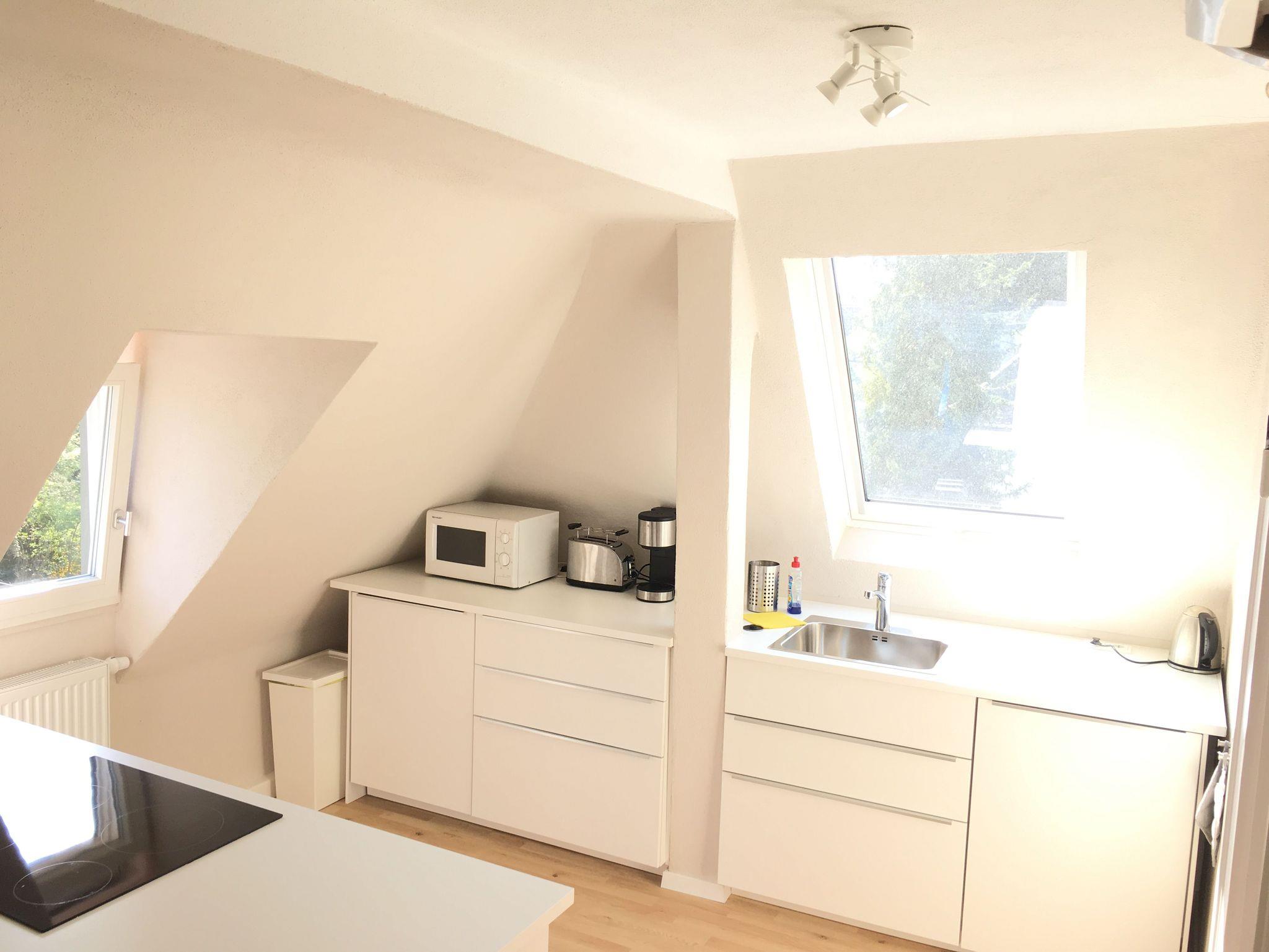 Das Apartment befindet sich im Dachgeschoß und umfasst 2 Schlafzimmer und ein Wohnzimmer für insgesamt 5 Personen. Es hat eine voll ausgestattete Küche mit einem Kühlschrank und einer Kaffeemaschine sowie 1 Bad mit einer Badewanne/ Dusche und einem Haartrockner.