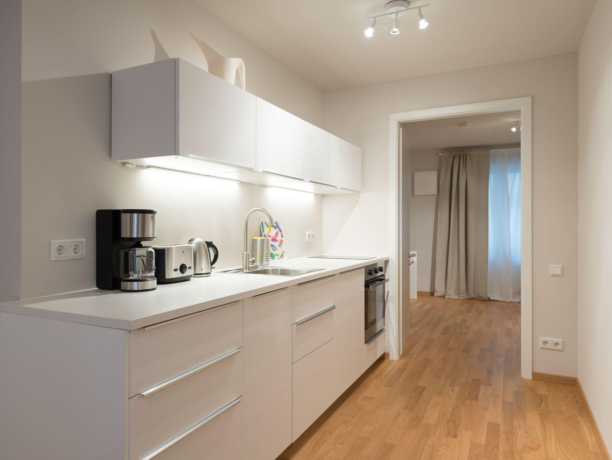 Die 2-Zimmer-Apartments wurden modern eingerichtet, sind alle barrierefrei und mit dem Aufzug bequem erreichbar.