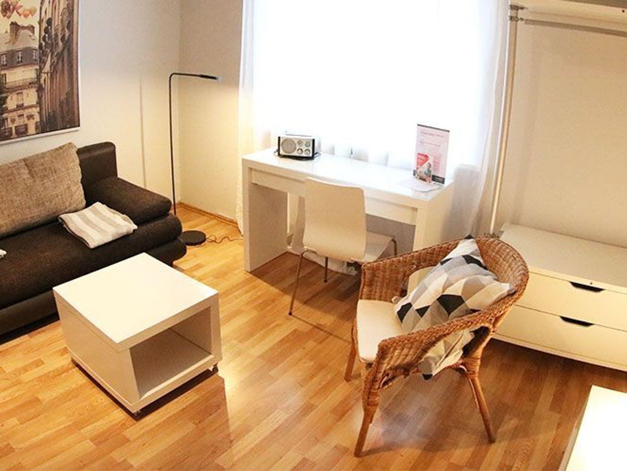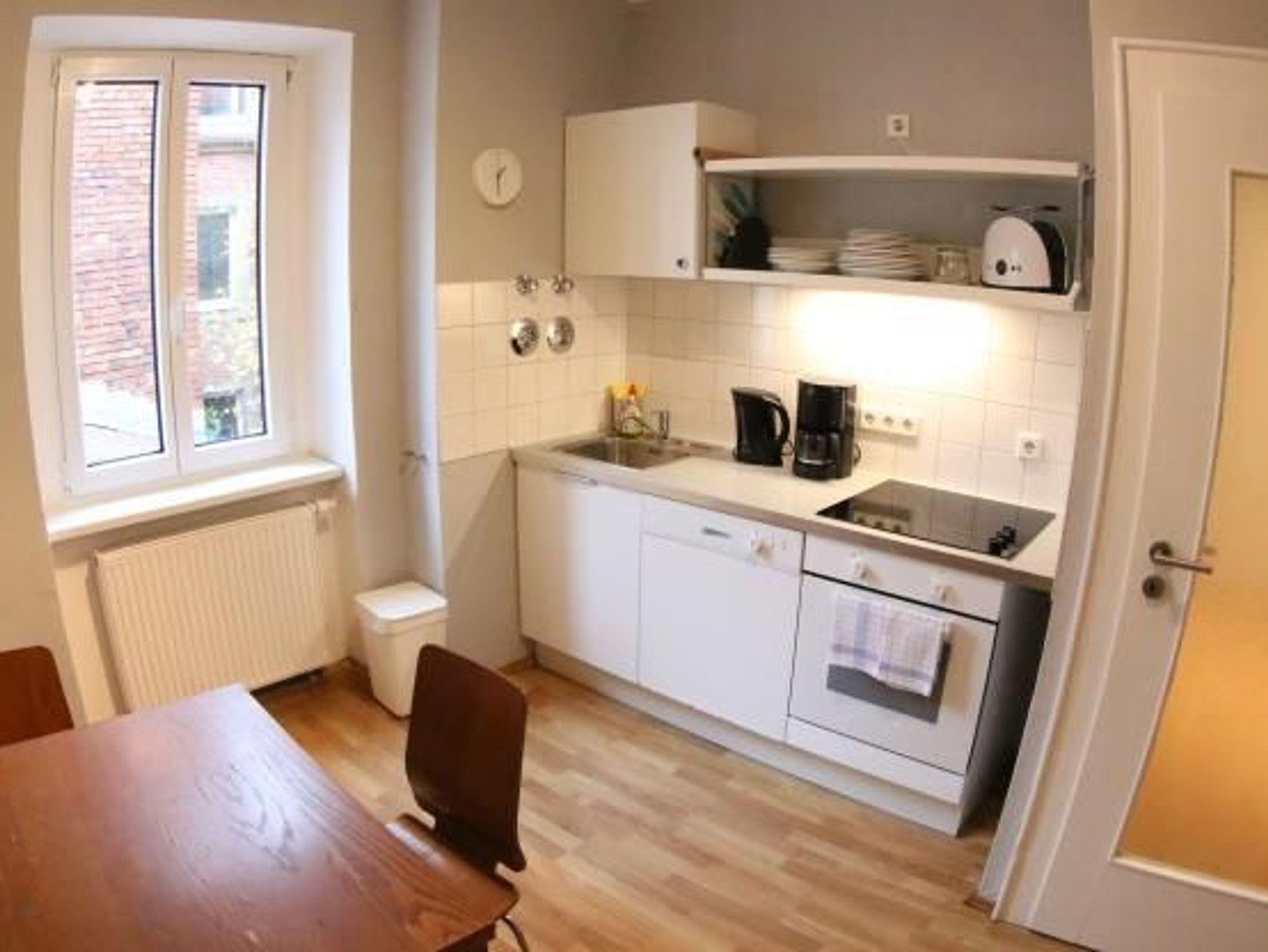 Ausgestattet mit Schlaf-/Wohnzimmer mit Doppelbett, Sofa, Schreibtisch und TV, Badezimmer mit Badewanne, einer gut ausgestatteten Küchenzeile mit Cerankochfeld, Backofen, Mikrowelle, Spülmaschine, Eßtisch und WLAN-Anschluss, lässt dieses Apartment keine Wünsche mehr offen.