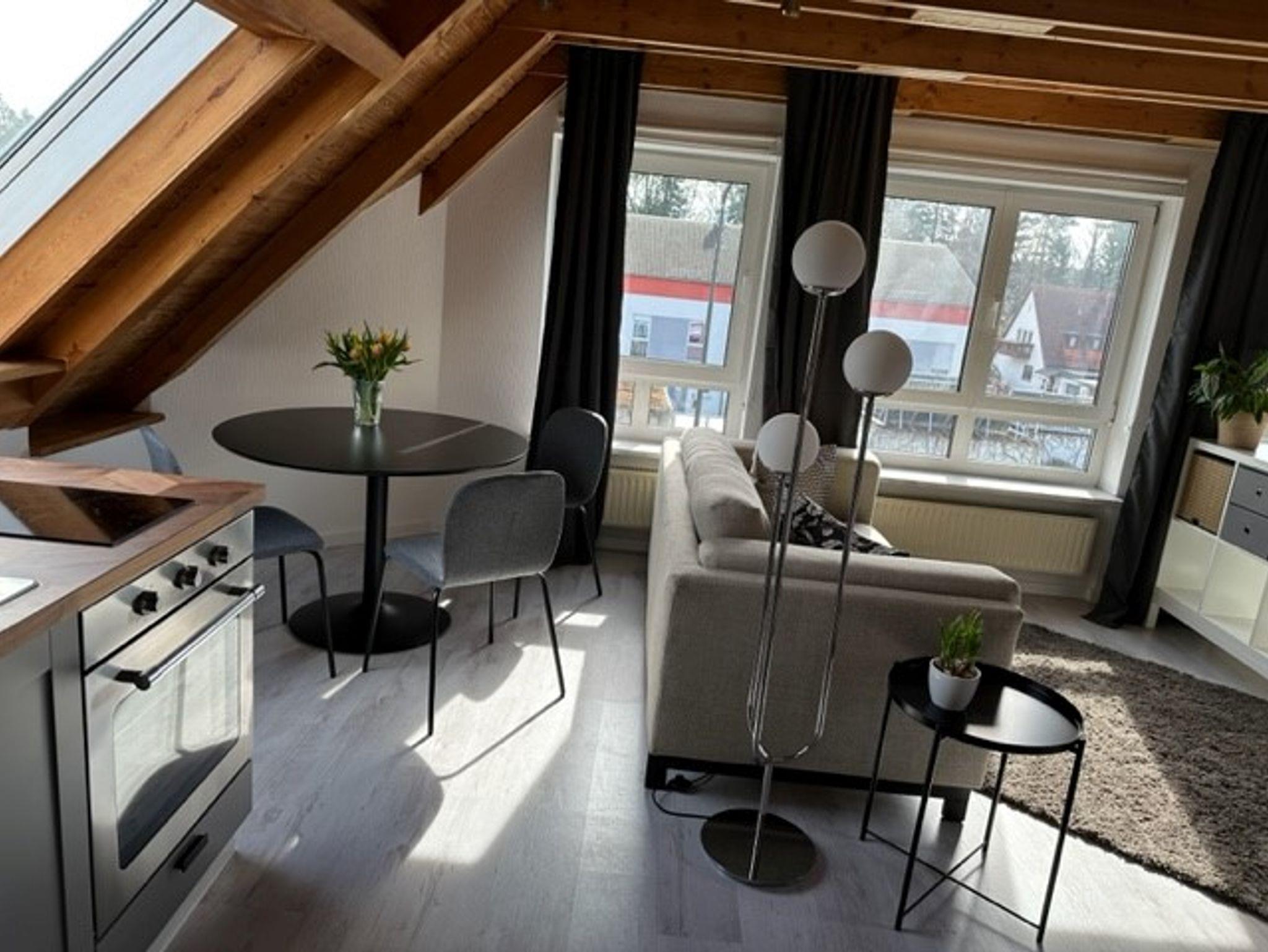 Dieses helle Einzimmer-Apartment mit 45qm wurde mit Komfort und Stil gestaltet und bietet eine einladende, offene Holzbalkendecke sowie viel natürliches Licht durch die sonnige Südlage. Die Wohnung verfügt über ein bequemes Einzelbett und ein Badezimmer mit Dusche, Fenster für natürliche Belüftung und einer Waschmaschine für zusätzlichen Komfort.