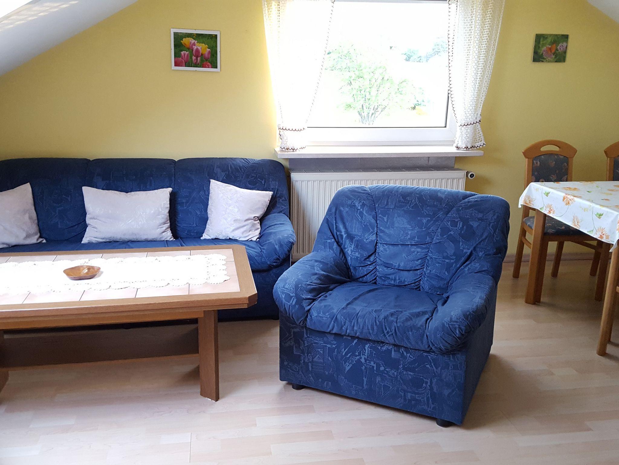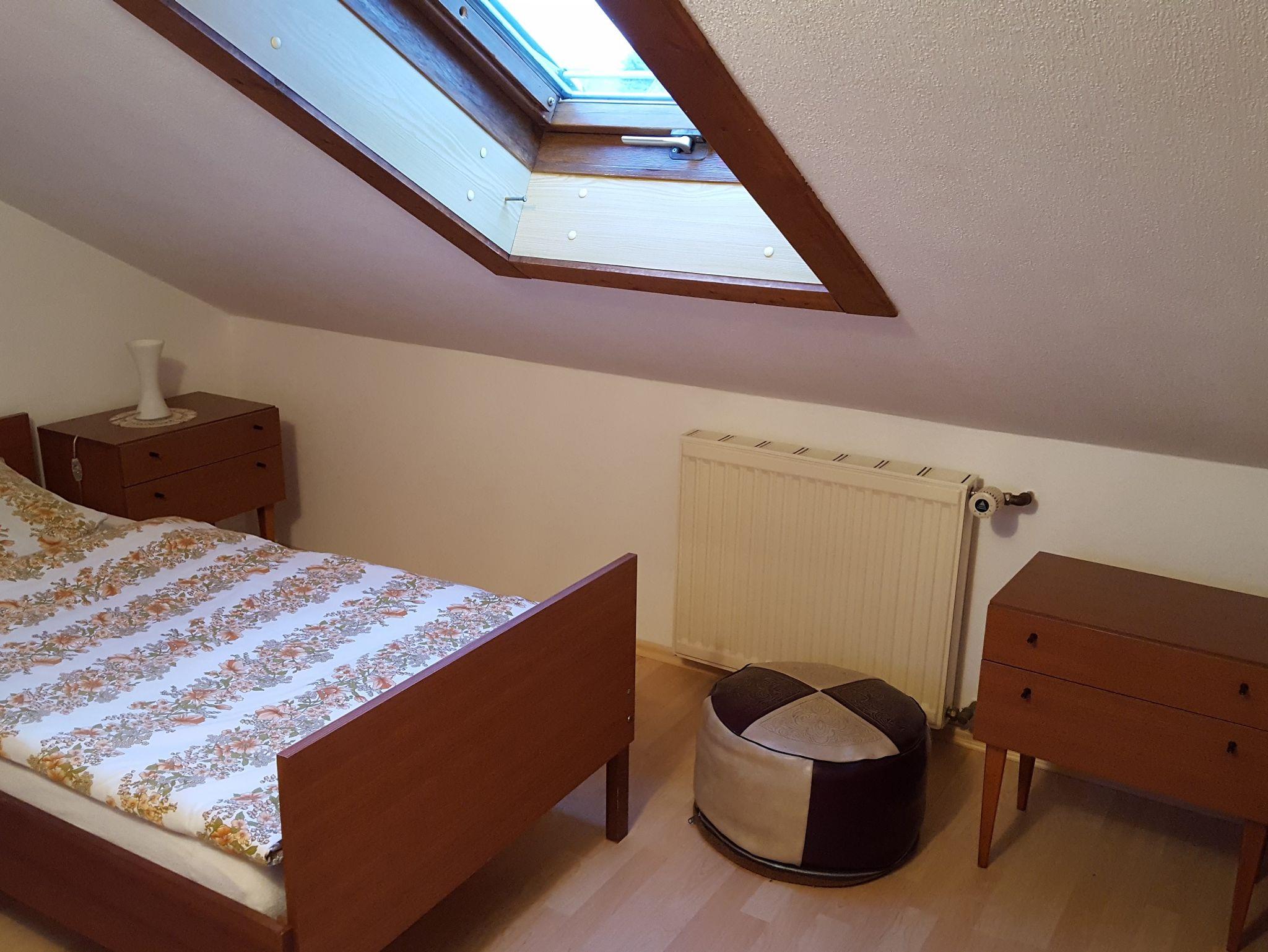 Die Ferienwohnung 2 ist ca. 65 m² groß und bietet 4 Personen Platz. Sie besteht aus 2 Schlafzimmern (1 großes, 1 kleines), einem großen Wohnzimmer mit Ess- und Küchenbereich, sowie einem Tageslicht-Bad mit Dusche und WC.