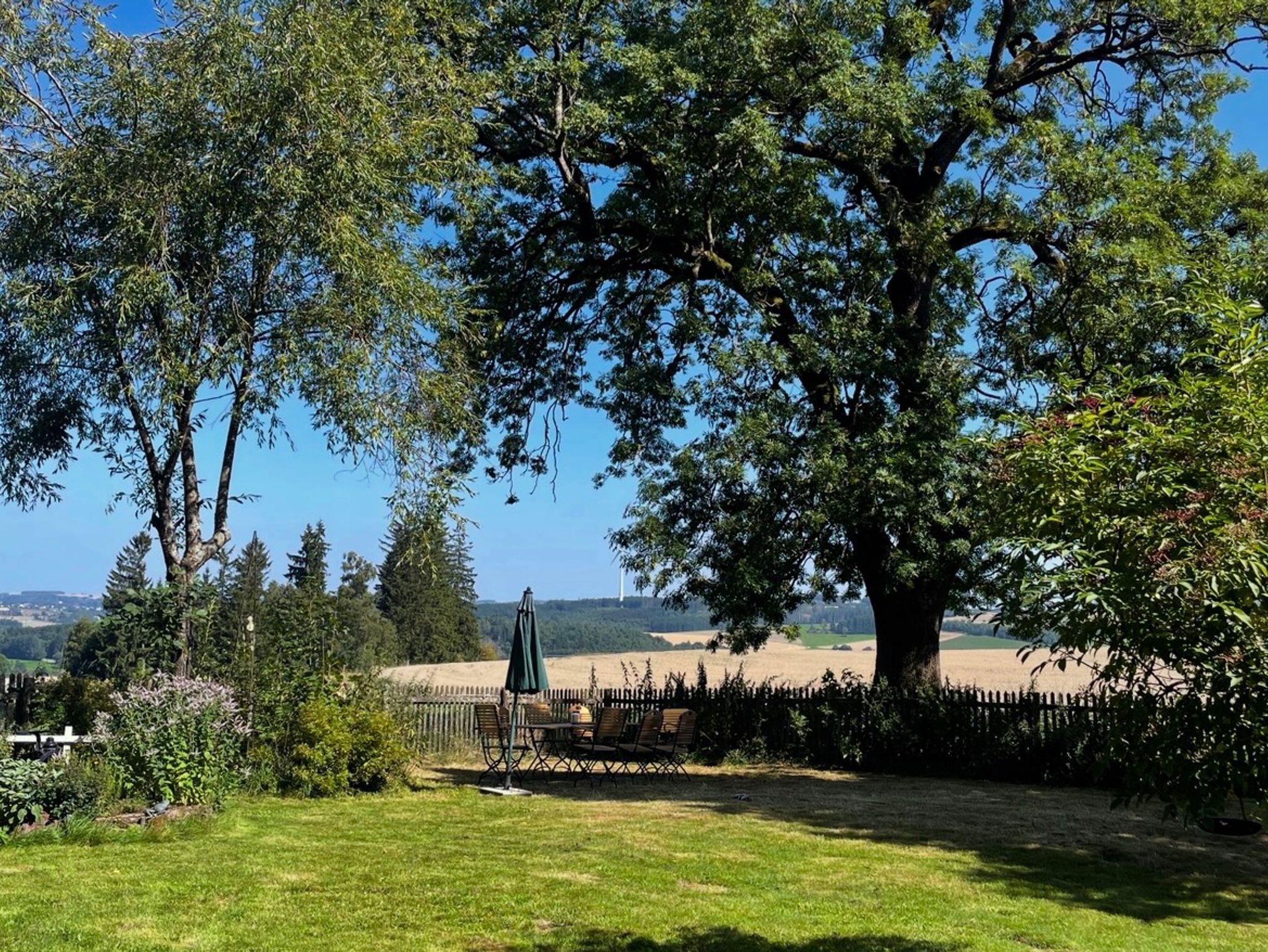 Der wunderschöne, große, eingezäunte Garten umfasst ca. 1000m² und bietet einen enormen Weitblick in den Frankenwald.