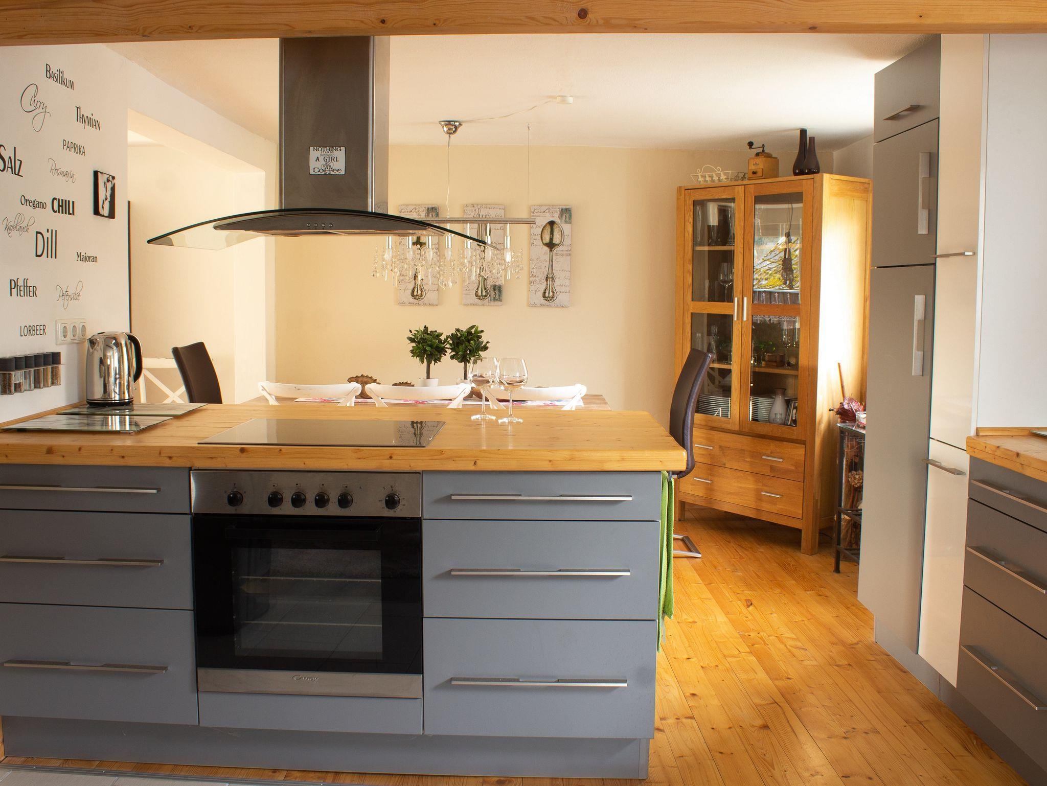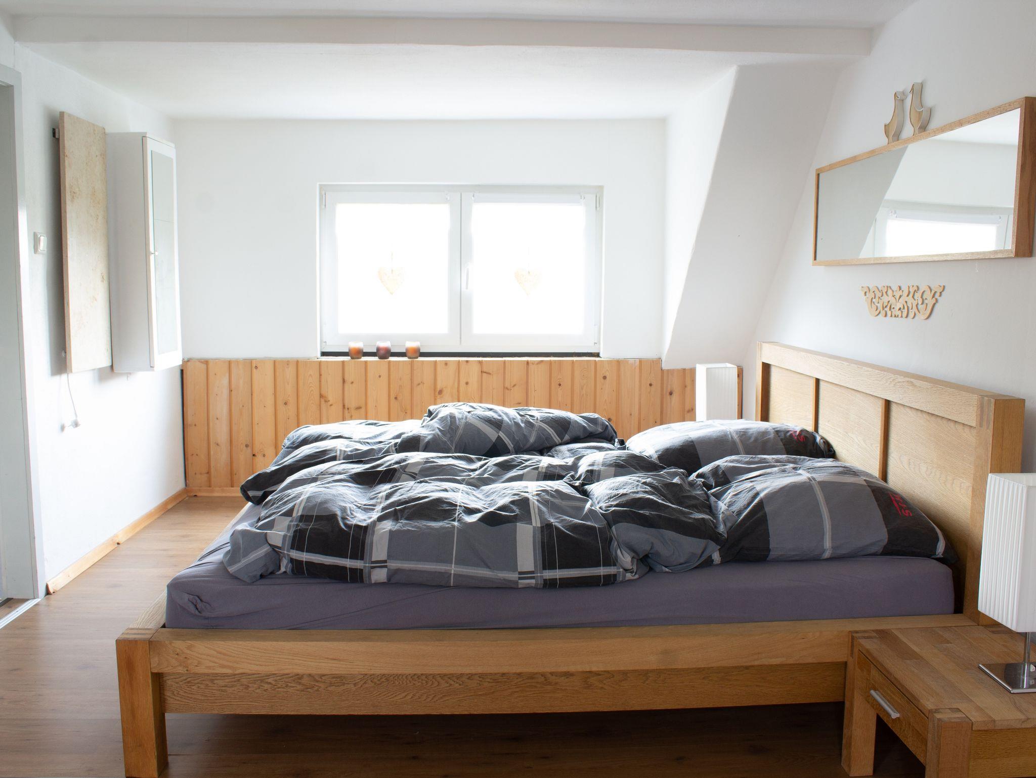 Unsere Gäste bewohnen das ganze Haus allein. Im Erdgeschoss befindet sich der Eingangsbereich und die Garderobe, die Schuhablage und die Putzkammer. Offenes Wohnen ist das Thema in 1. Stock, außerdem gibt es dort ein sehr großes Badezimmer mit Tür zur Dachterrasse. Selbstverständlich geht es vom Esszimmer über die Leseecke auch zur Dachterrasse. Über den Flur geht es dann in den 2. Stock zum großen Schlafzimmer mit Doppelbett, und wenn gewünscht können bis zu maximal 2 Erwachsene oder aber maximal 3 Kinder dort mit übernachten. Im ersten Stock können bis zu 2 Personen übernachten (Schlafbett 1,60m). Das Zimmer kann mit einem Raumteiler auf Wunsch abgetrennt werden. Das 3. Schlafzimmer wurde komplett neu renoviert und bietet somit noch mehr Platz für unsere Gäste. Der neue Raum befindet sich im Erdgeschoß und verfügt über ein Doppelbett und ein hochwertiges Schlafsofa. Es ist wohnlich gestaltet, sodass man sich tagsüber mal zurück ziehen kann. Unser 4 Sterne Ferienhaus ist jetzt auch hervorragend geeignet für befreundete Ehepaare oder Freunde. Jetzt können wir auch bis zu 6 Einzelbetten anbieten. Die hochwertige Küche mit einer Kochinsel und einen Backofen, Herd, Spülmaschine, Kühlschrank, Gefrierschrank, Toaster, Kaffeemaschine, Wasserkocher und exklusiven Geschirr ausgestattet. Das Bad ist besonders groß mit Badewanne, Dusche und Waschtisch. Das Wohnzimmer ist mit bequemer Sitzlandschaft und großen TV und Beamer und Leinwand mit Soundanlage ausgestattetes gibt einen extra Schreibtisch zum Arbeiten am Computer. In der schönen Leseecke können Sie entspannen und verweilen. Vom Esszimmer mit großem Tisch geht es auch direkt zur geräumigen Dachterrasse mit Blick auf das Selbitztal. Tisch, Stühle, Sonnenschirm und Liegen laden Sie ein die Sonne zu genießen.