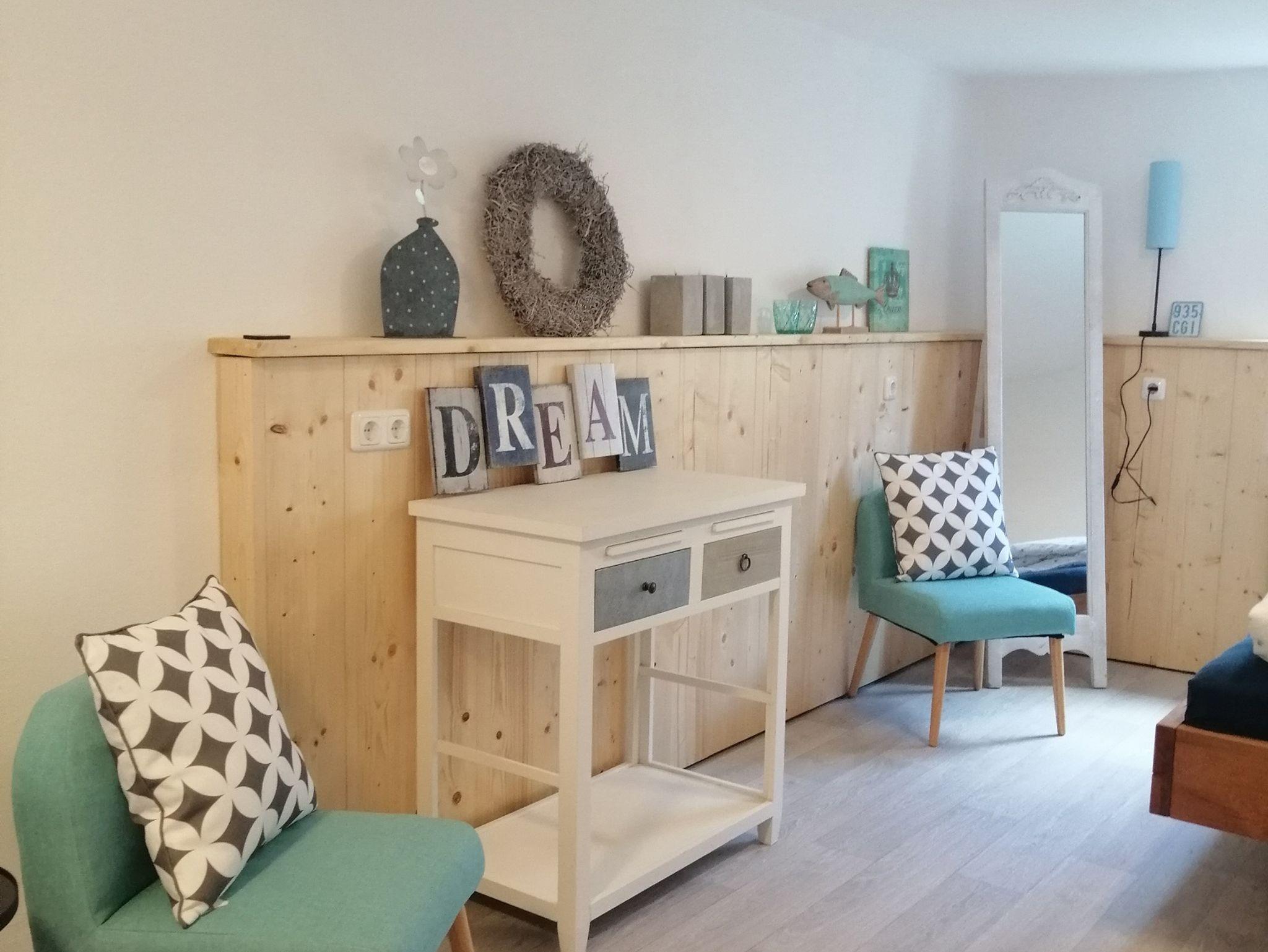 Eingerichtet wurde das Ferienhaus von der Deko-Scheune. Wir lieben es schöne Dinge miteinander zu kombinieren. Modern mit Vintage, Antik mit Neu.
