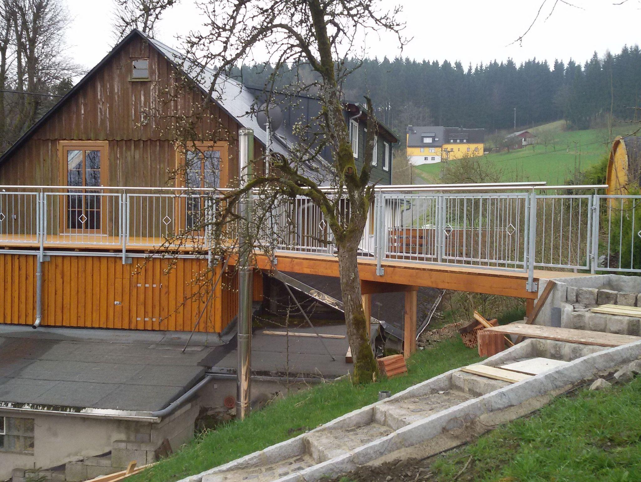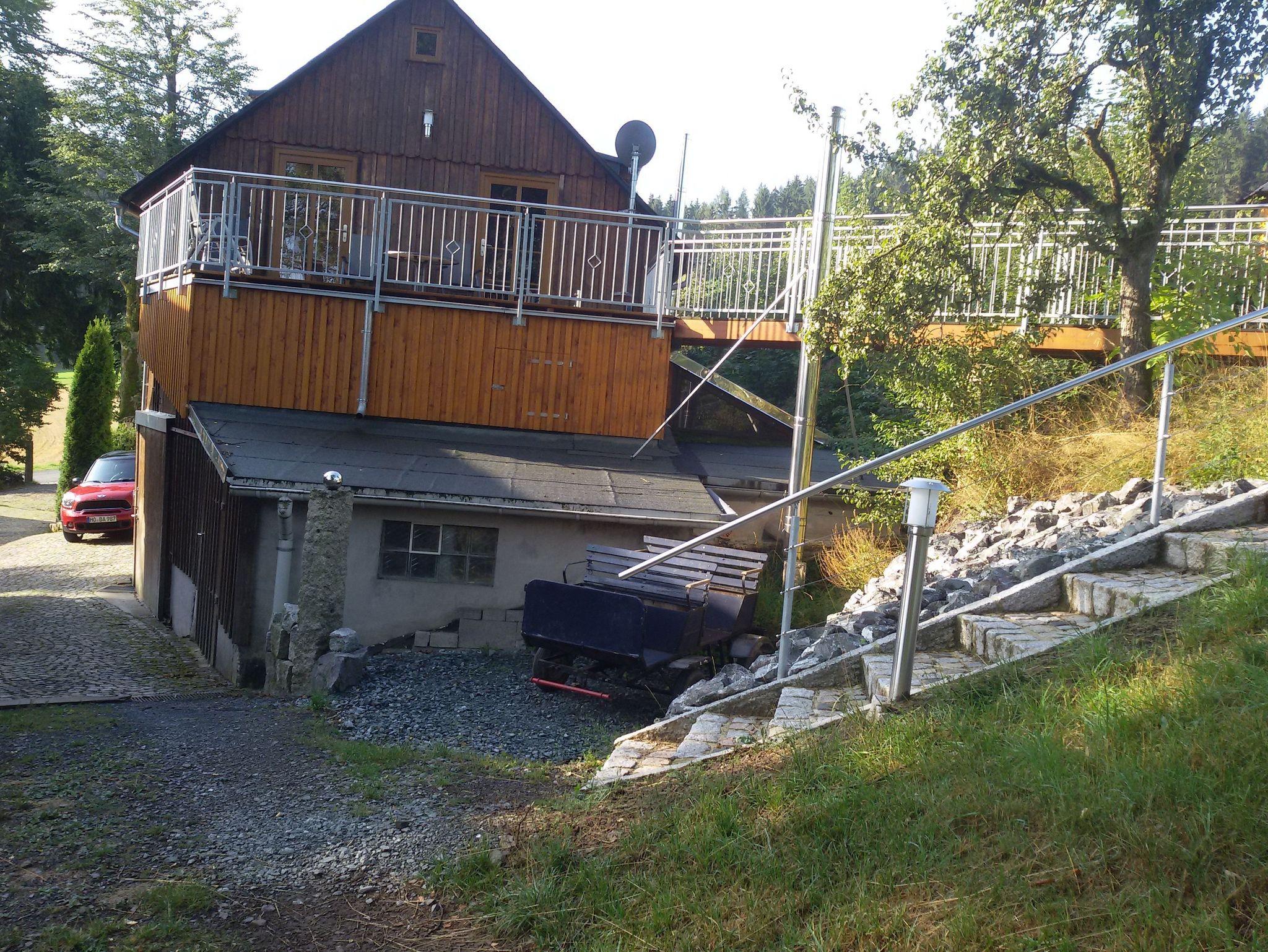Auf unserer kleinen Farm am Fuße des 795 Meter hohen Döbrabergs im Frankenwald bieten wir seit 2018 die Ferienwohnung Auszeit im Dachgeschoß an, für 2-3 Personen, mit einem separaten Zugang und eigener Terrasse.