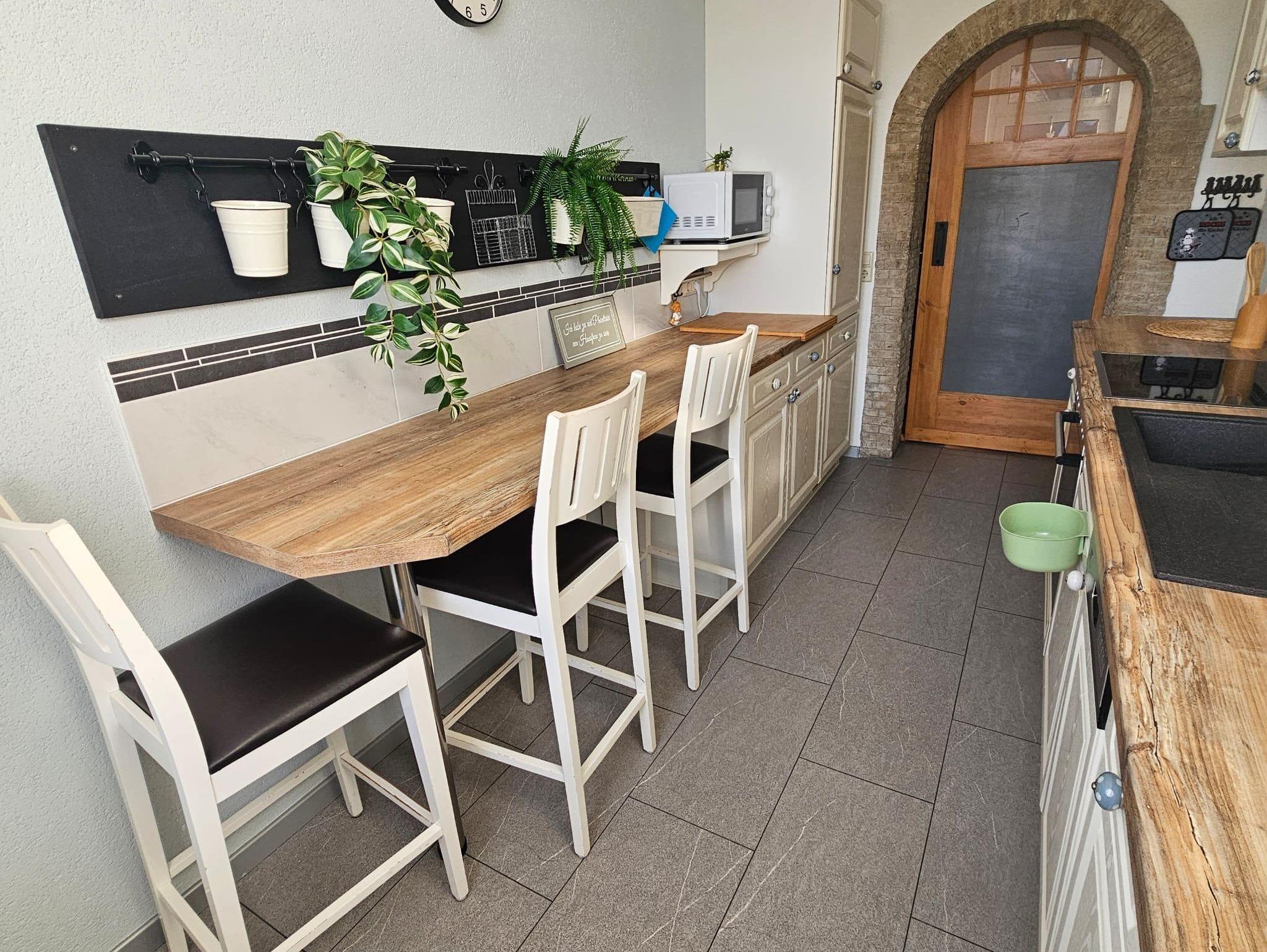 Die Ferienwohnung besteht aus einem seperaten Wohn-/ Essbereich, einer Küche, einem Bad mit einer ebenerdigen Dusche und WC, sowie zwei getrennten Schlafzimmern mit jeweils einem Doppelbett.