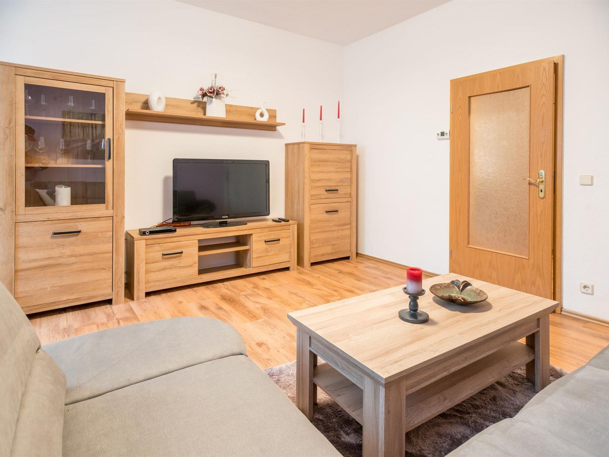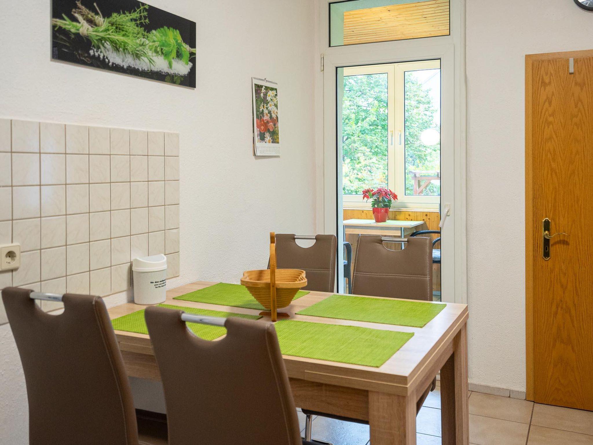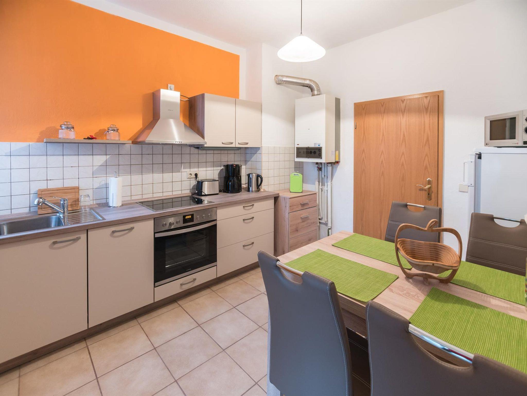 Die voll sanierte und modern eingerichtete Wohnung mit seperatem Eingang bietet Platz für bis zu 8 Personen. Sie umfasst des Weiteren eine vollwertige Küche mit Mikrowelle, Geschirrspüler, Elektroherd, Backofen usw. In der Wohnung befinden sich zwei Fernseher. Sie können des Weiteren das W-LAN nutzen. Ein Kinderbettchen für ein Kind bis 5 Jahre und ein Kinderstühlen stehen auch zur Verfügung. Auf dem Grundstück unseres Hauses haben Sie eine Parkmöglichkeit für zwei PKWs. Ihre Fahrräder können Sie im Keller sicher unterstellen. Im Garten können Sie eine überdachte Sitz- und Grillgelegeneit nutzen.