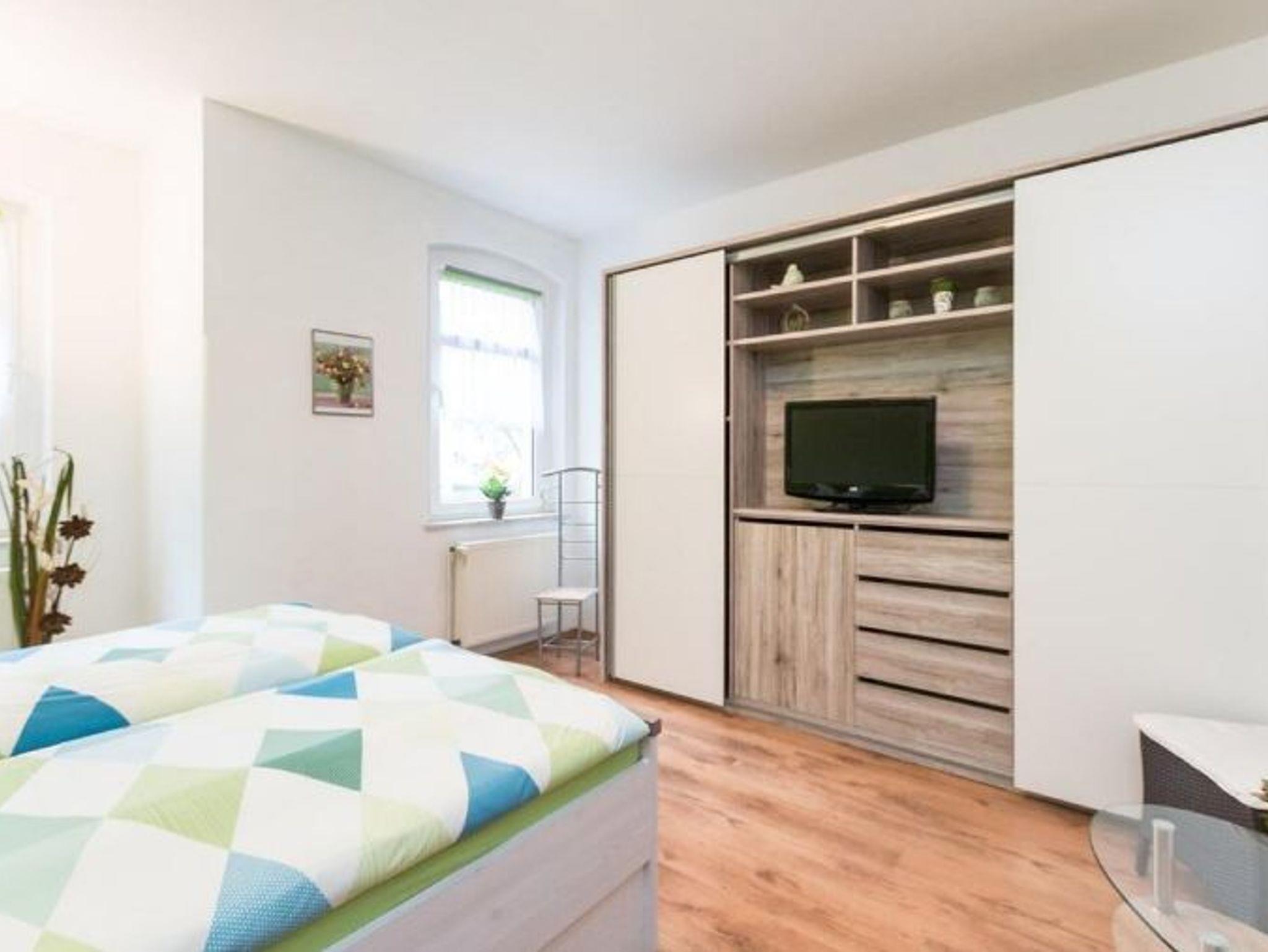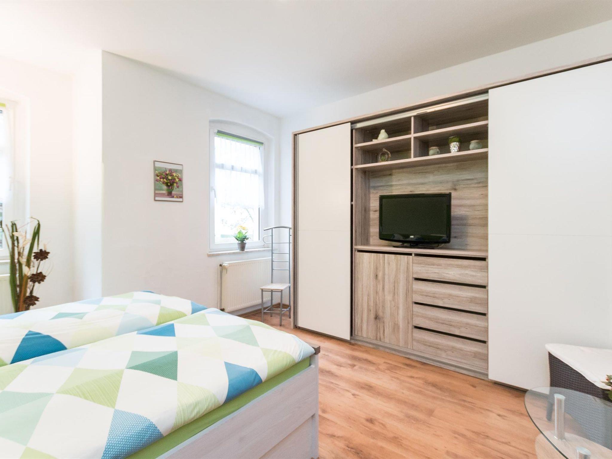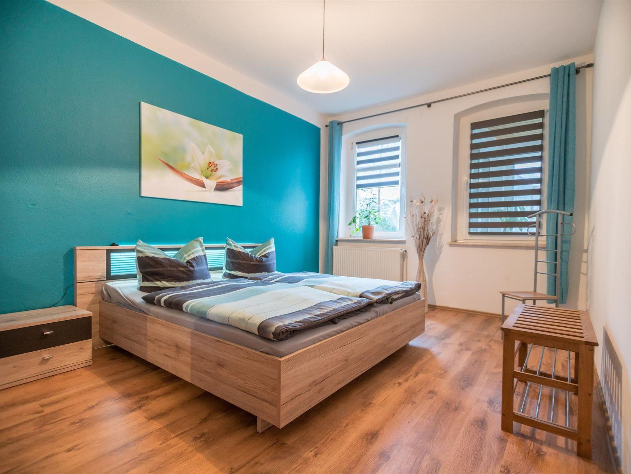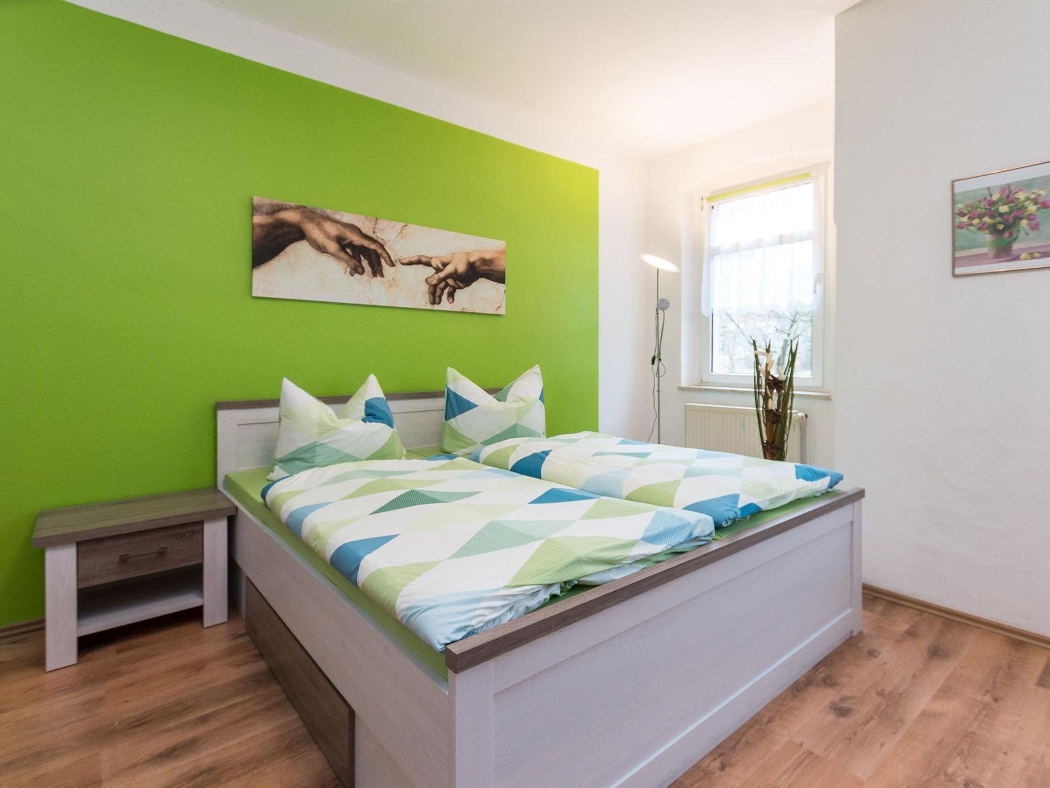 Die voll sanierte und modern eingerichtete Wohnung mit seperatem Eingang bietet Platz für bis zu 8 Personen. Sie umfasst des Weiteren eine vollwertige Küche mit Mikrowelle, Geschirrspüler, Elektroherd, Backofen usw. In der Wohnung befinden sich zwei Fernseher. Sie können des Weiteren das W-LAN nutzen. Ein Kinderbettchen für ein Kind bis 5 Jahre und ein Kinderstühlen stehen auch zur Verfügung. Auf dem Grundstück unseres Hauses haben Sie eine Parkmöglichkeit für zwei PKWs. Ihre Fahrräder können Sie im Keller sicher unterstellen. Im Garten können Sie eine überdachte Sitz- und Grillgelegeneit nutzen.