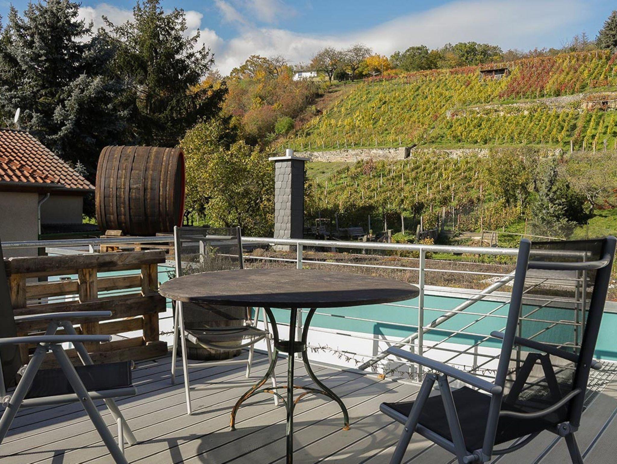 Neben der besonders idyllischen Lage besticht die Ferienwohnung durch ihr angenehmes Raum- und Farbkonzept sowie durch eine moderne Einrichtung. Für wohlige Wärme in den Räumen sorgt eine Fußbodenheizung. Das Badezimmer ist mit einer ebenerdigen Dusche und zeitgenössischer Fliesenoptik ausgestattet. Wohnzimmer und Küche sind in einem offenen Wohnbereich vereint, in dem es sich nach einem erlebnisreichen Urlaubstag wunderbar entspannen lässt. Ein Highlight ist die großzügig geschnittene Dachterrasse, die an den Außenbereich eines Lofts erinnert – hier kann man genussvoll frühstücken oder abends beim Sundowner mit Blick in den Weinberg relaxen. Die Ferienwohnung besitzt neben dem Schlafzimmer einen weiteren Raum, der als Schlafzimmer für Kinder genutzt werden kann.