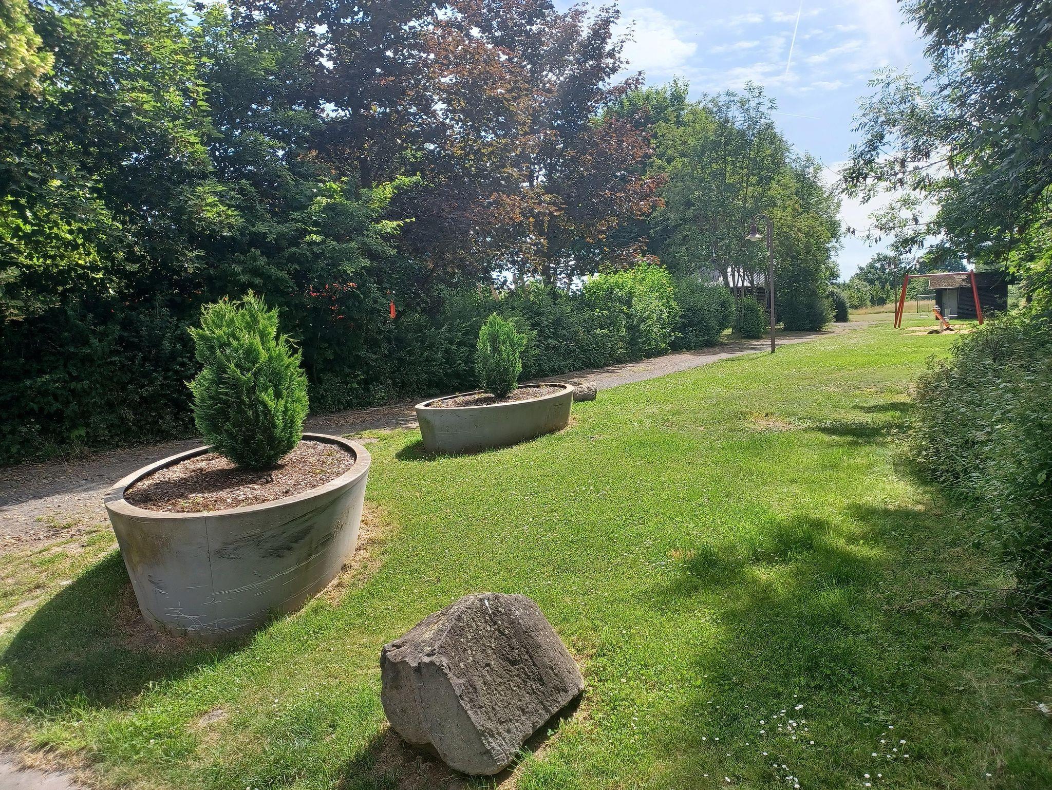 Für Kinder befindet sich verkehrsberuhigt und gut erreichbar ein neu gestalteter und schattiger Kinderspielplatz in der Nähe.
