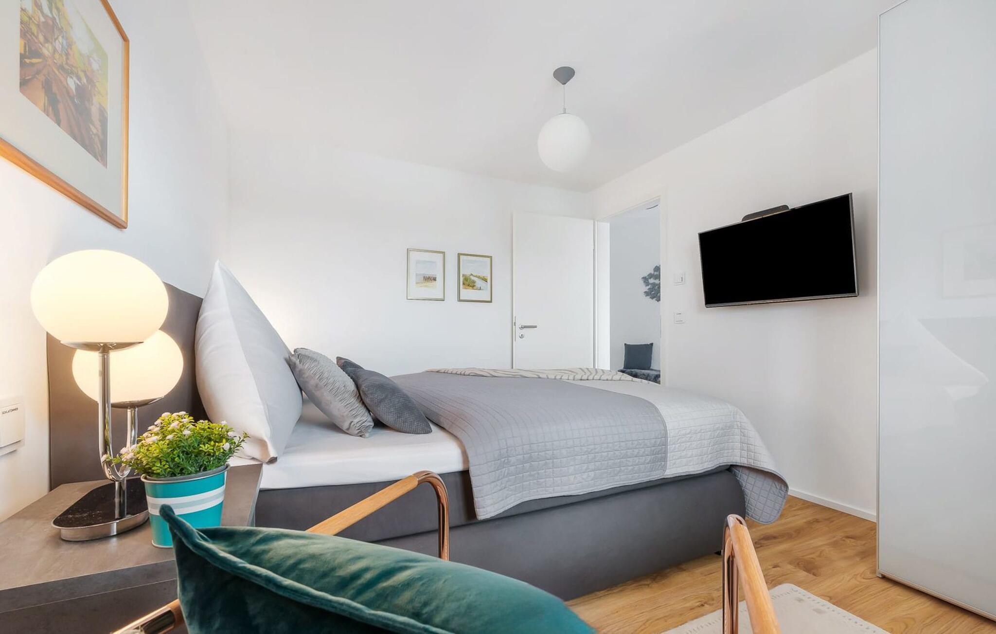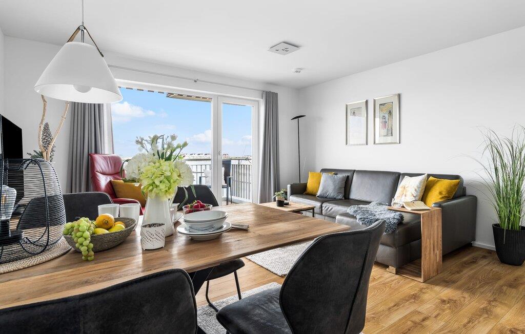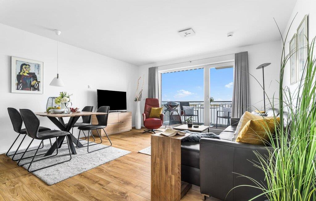 Åbn lejlighedsdøren, træd ind og kig gennem entre, stue, gulv-til-loft vinduer og altanen direkte ud til lystbådehavnen og slimmundingen. En fantastisk udsigt over Østersøen giver jer en ferie- og afslappende atmosfære fra første sekund!