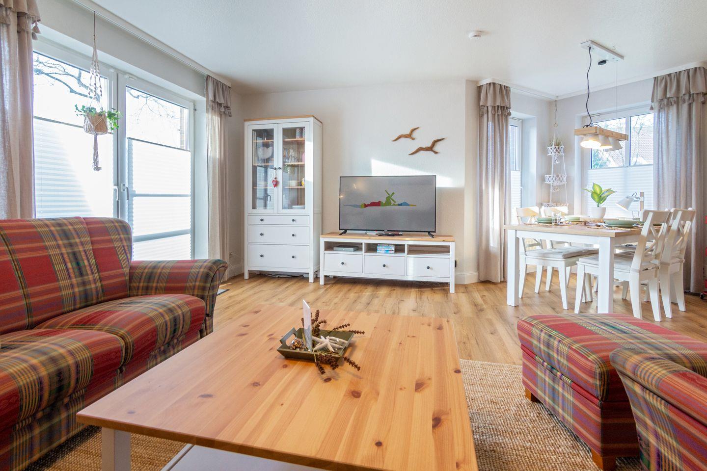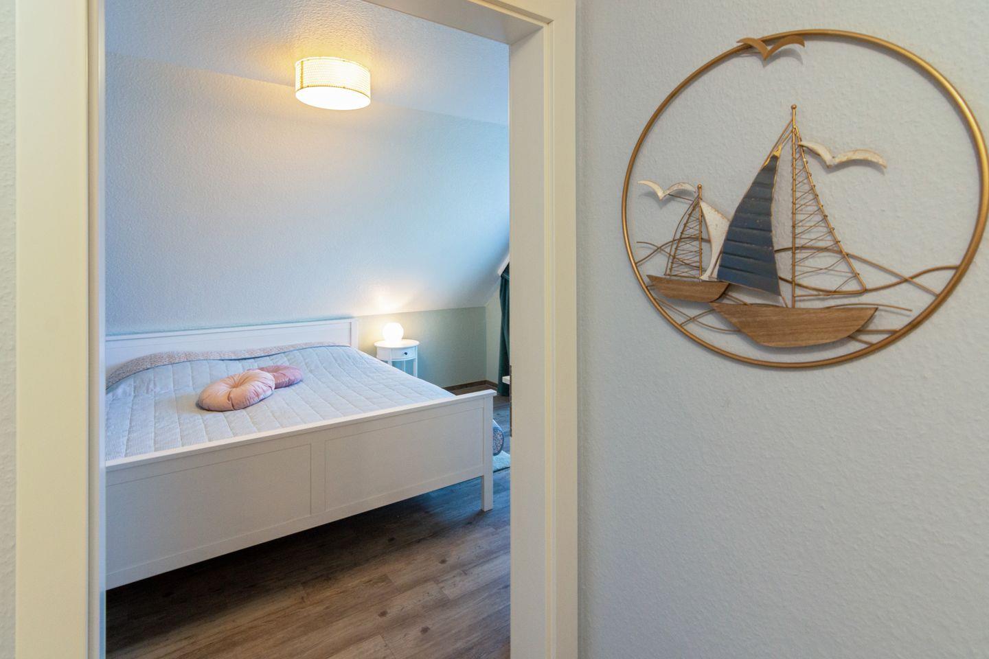 Die 2025 umfassend renovierte Küstenkoje in Neßmersiel bietet auf 75 m² Wohnfläche und zwei Etagen wohnlichen Komfort für bis zu vier Personen.